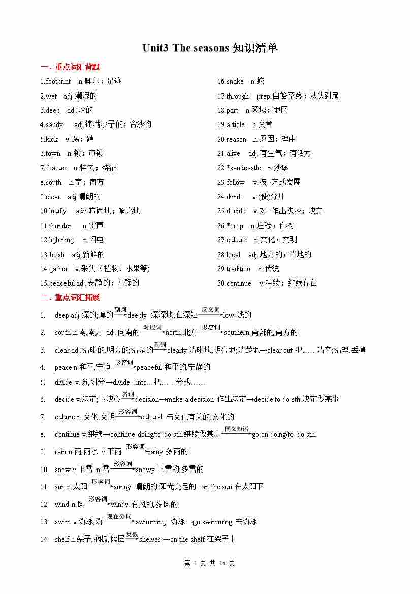 3.新牛津版Unit3 The seasons知识清单(背诵版)