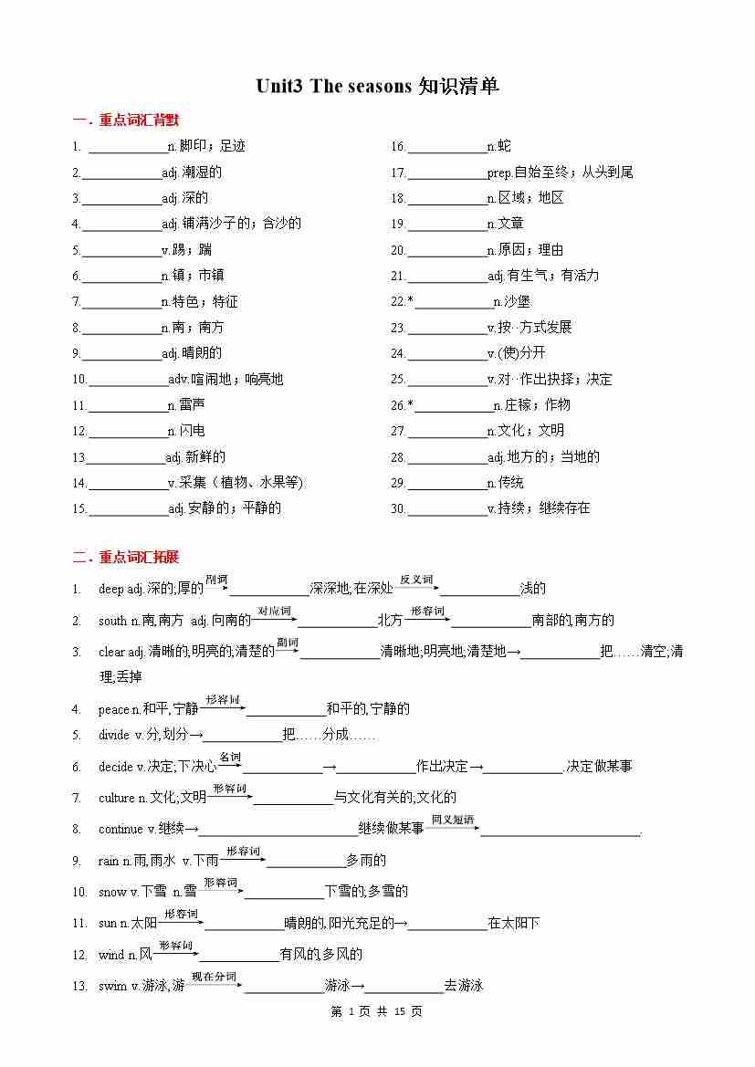 3.新牛津版Unit3 The seasons知识清单(默写版)