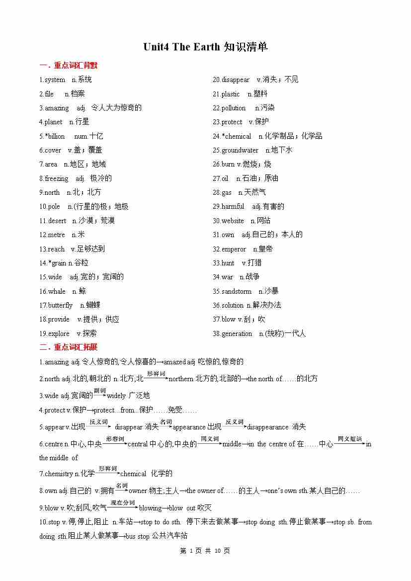 4.新牛津版Unit4 The Earth知识清单(背诵版)