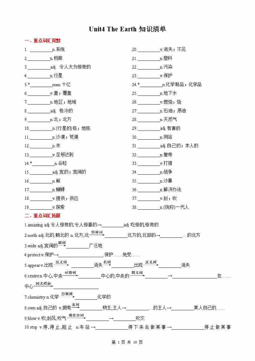 4.新牛津版Unit4 The Earth知识清单(默写版)