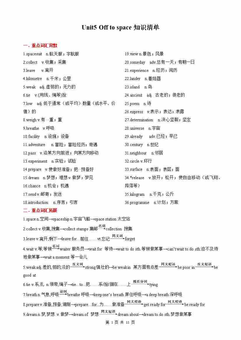 5.新牛津版Unit5 Off to space知识清单(背诵版)