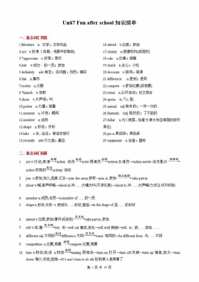 7.新牛津版Unit7 Fun after school知识清单(背诵版)