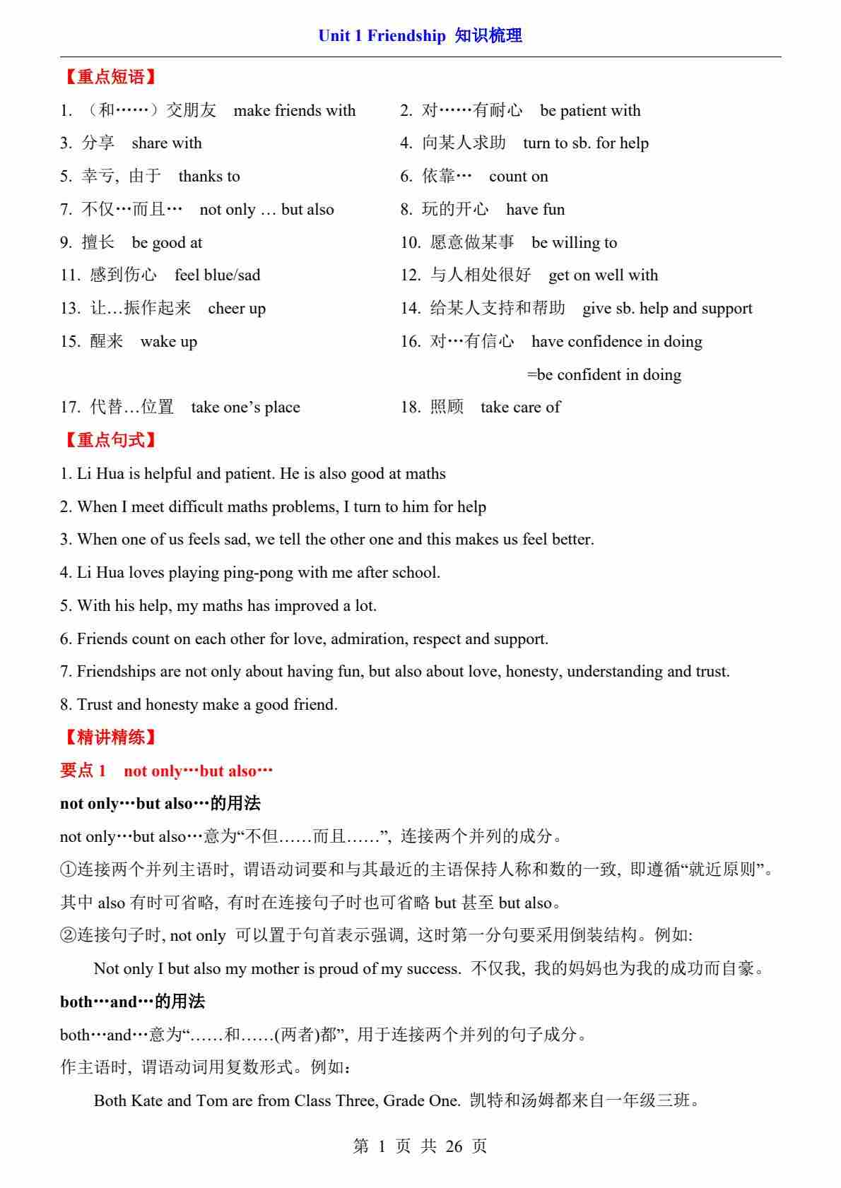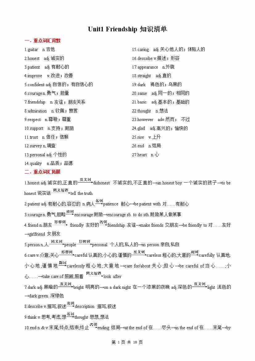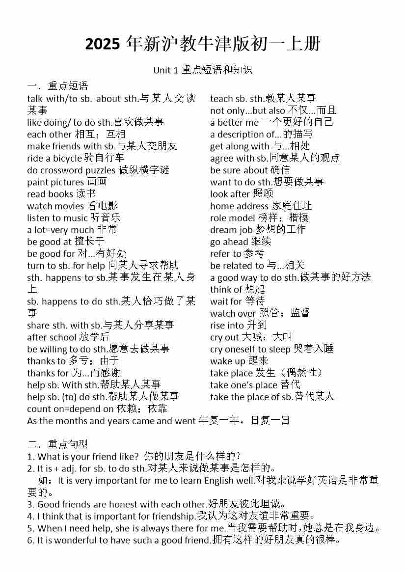 1.新牛津版Unit1 Friendship知识清单(背诵版)