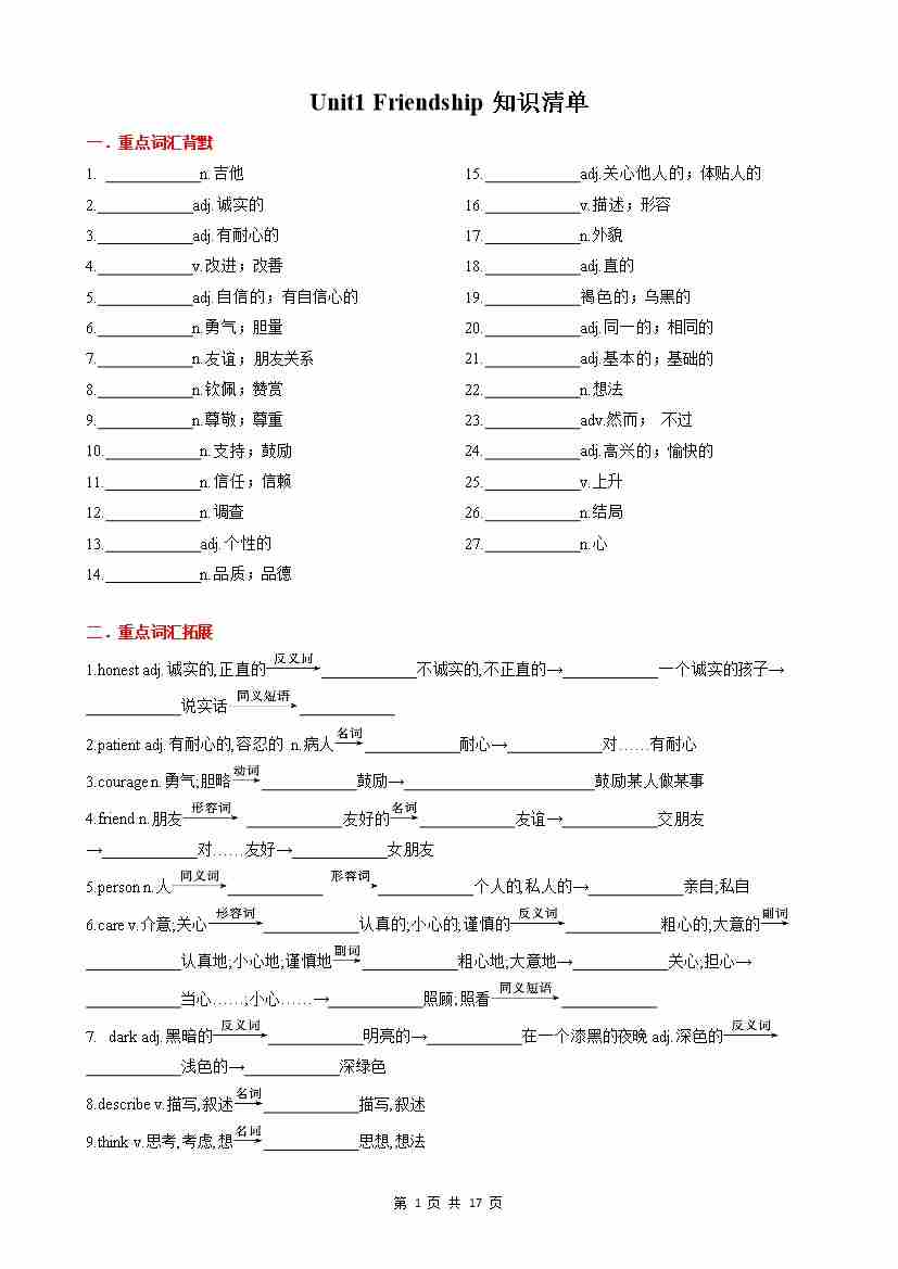 1.新牛津版Unit1 Friendship知识清单(默写版)