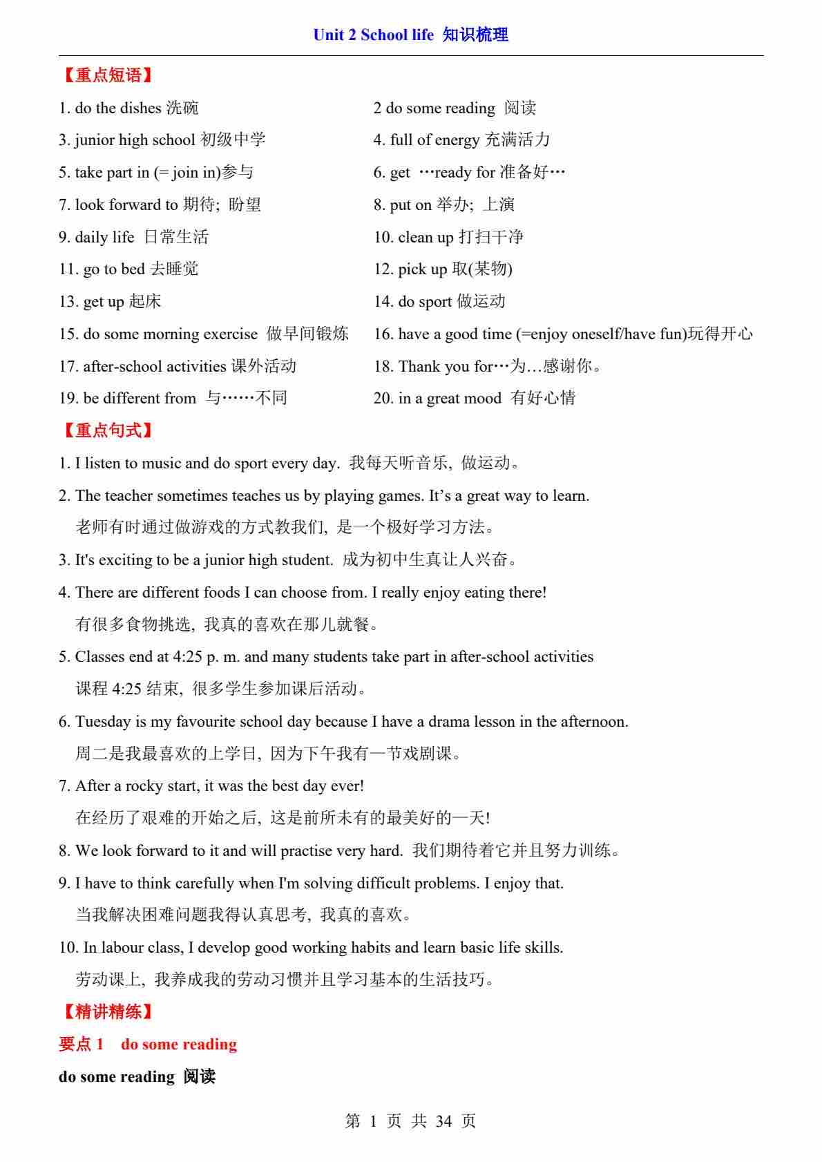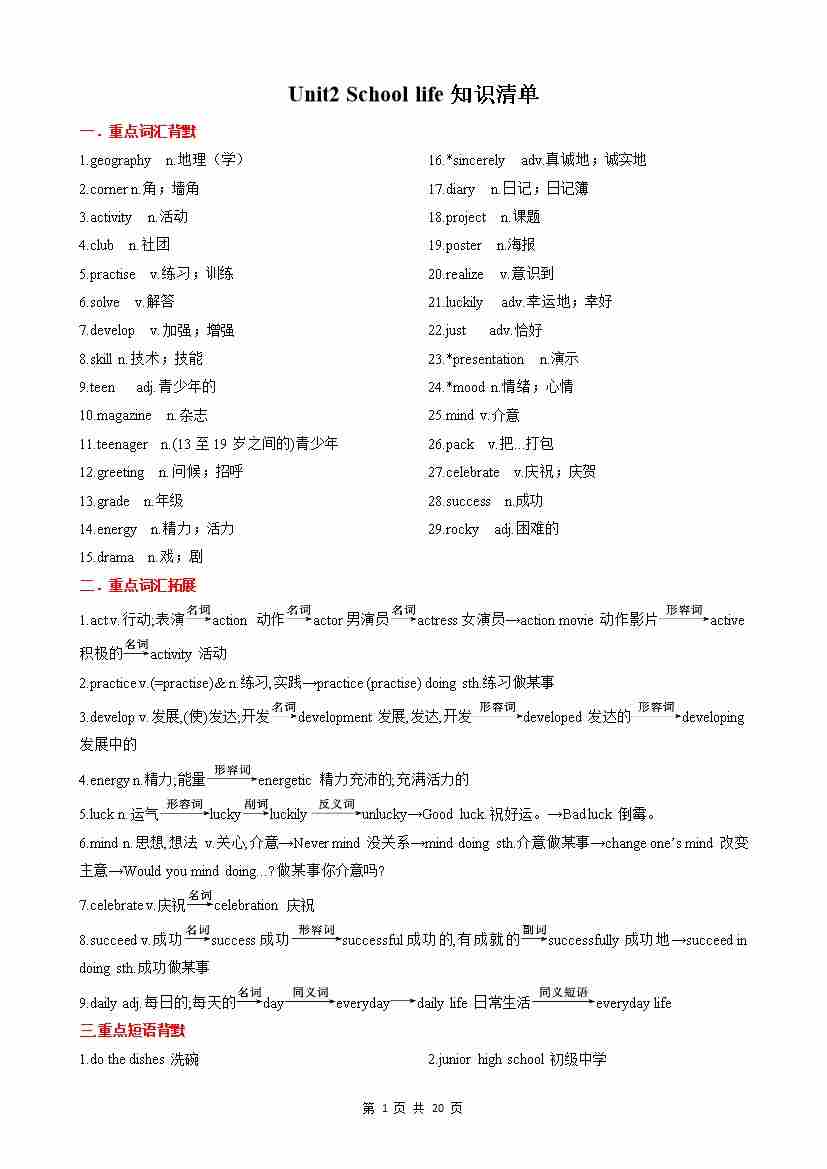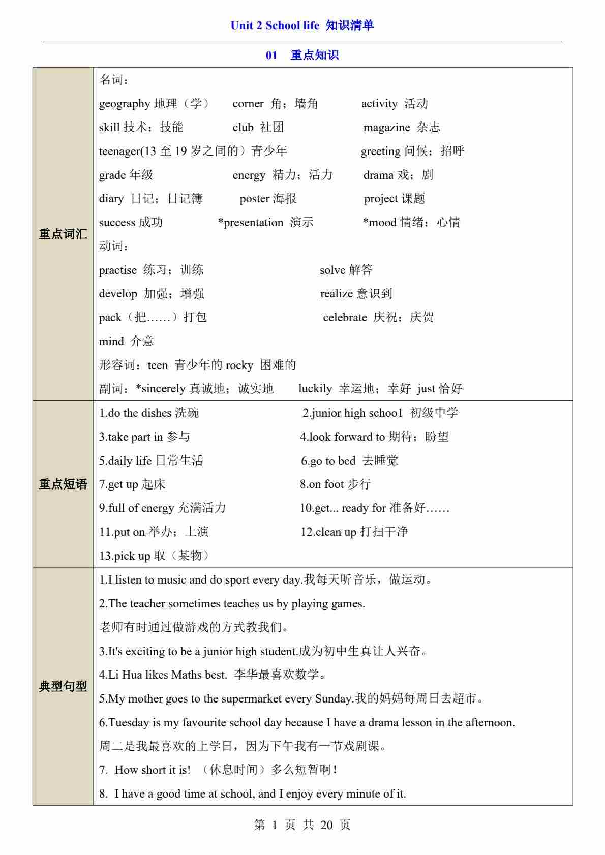 2.新牛津版Unit2 School life知识清单(背诵版)
