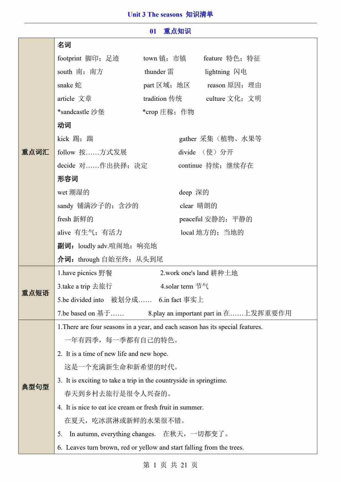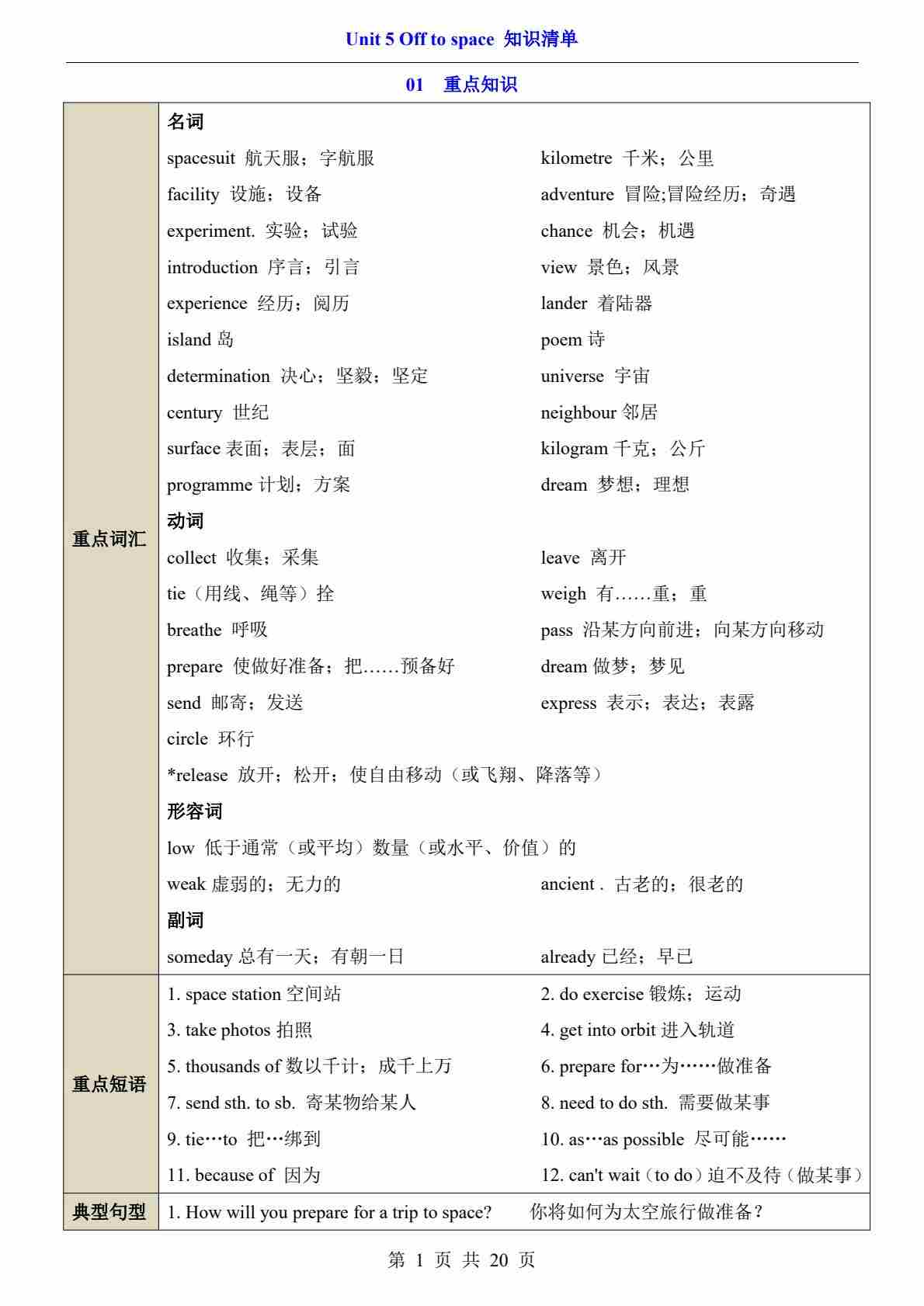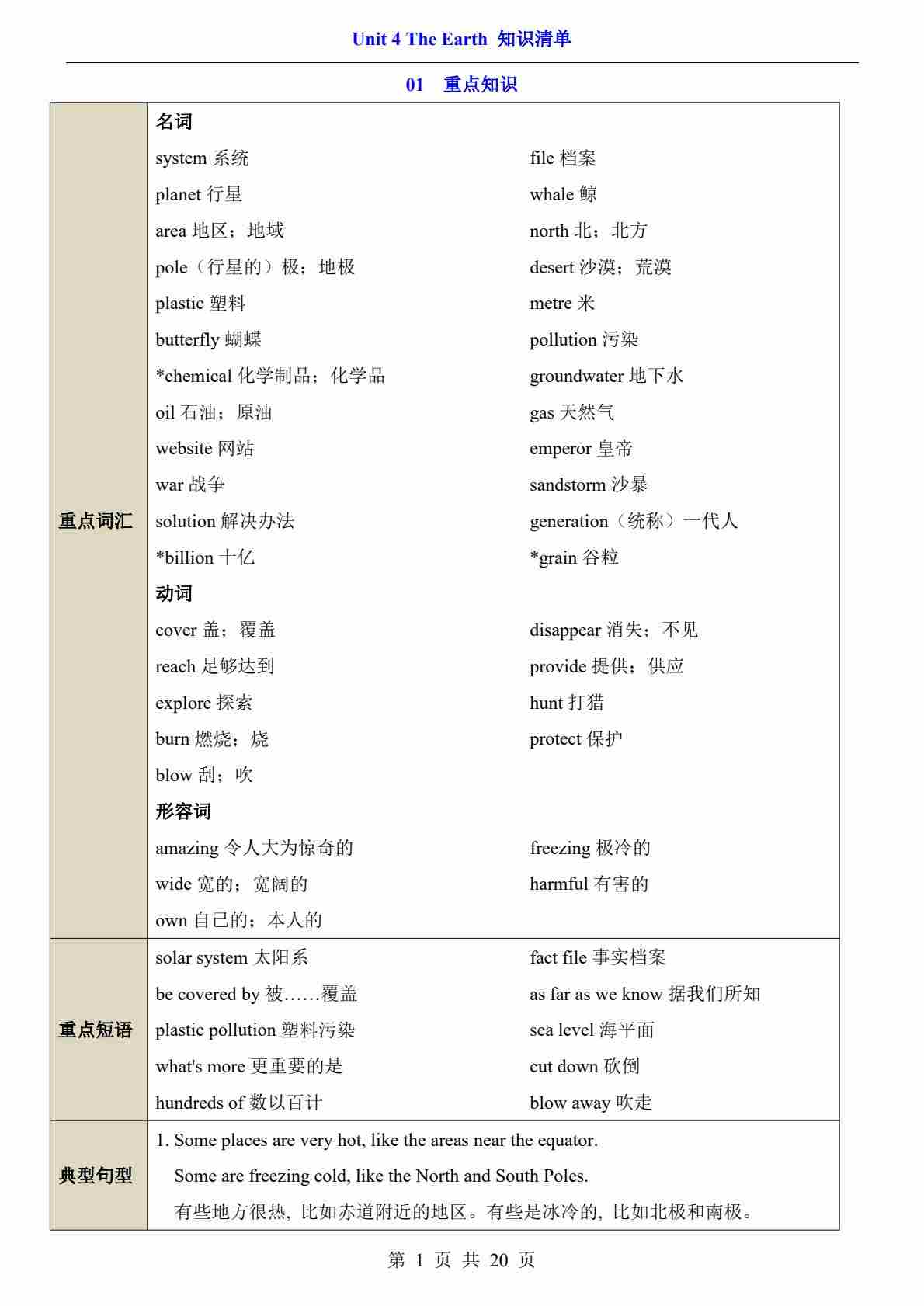 2.新牛津版Unit2 School life知识清单(背诵版)