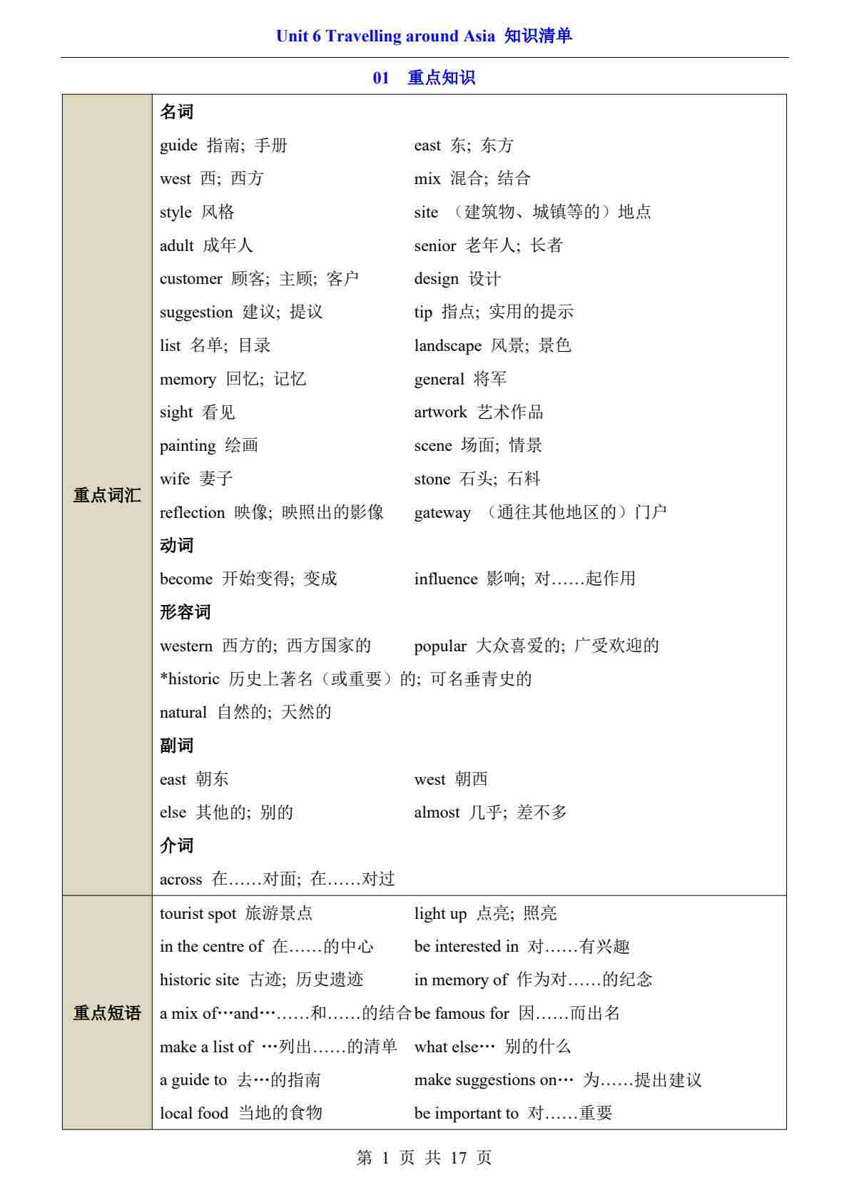 2025七年级英语上册重点短语和知识2025学年沪教牛津版Unit1-Uni8沪教版