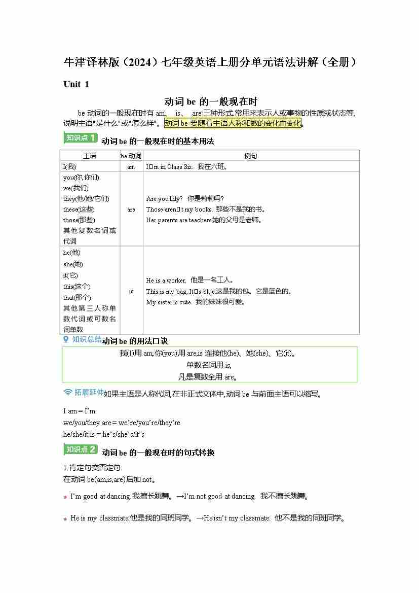 2025新英语译林版7上分单元语法讲解(全册 14页)