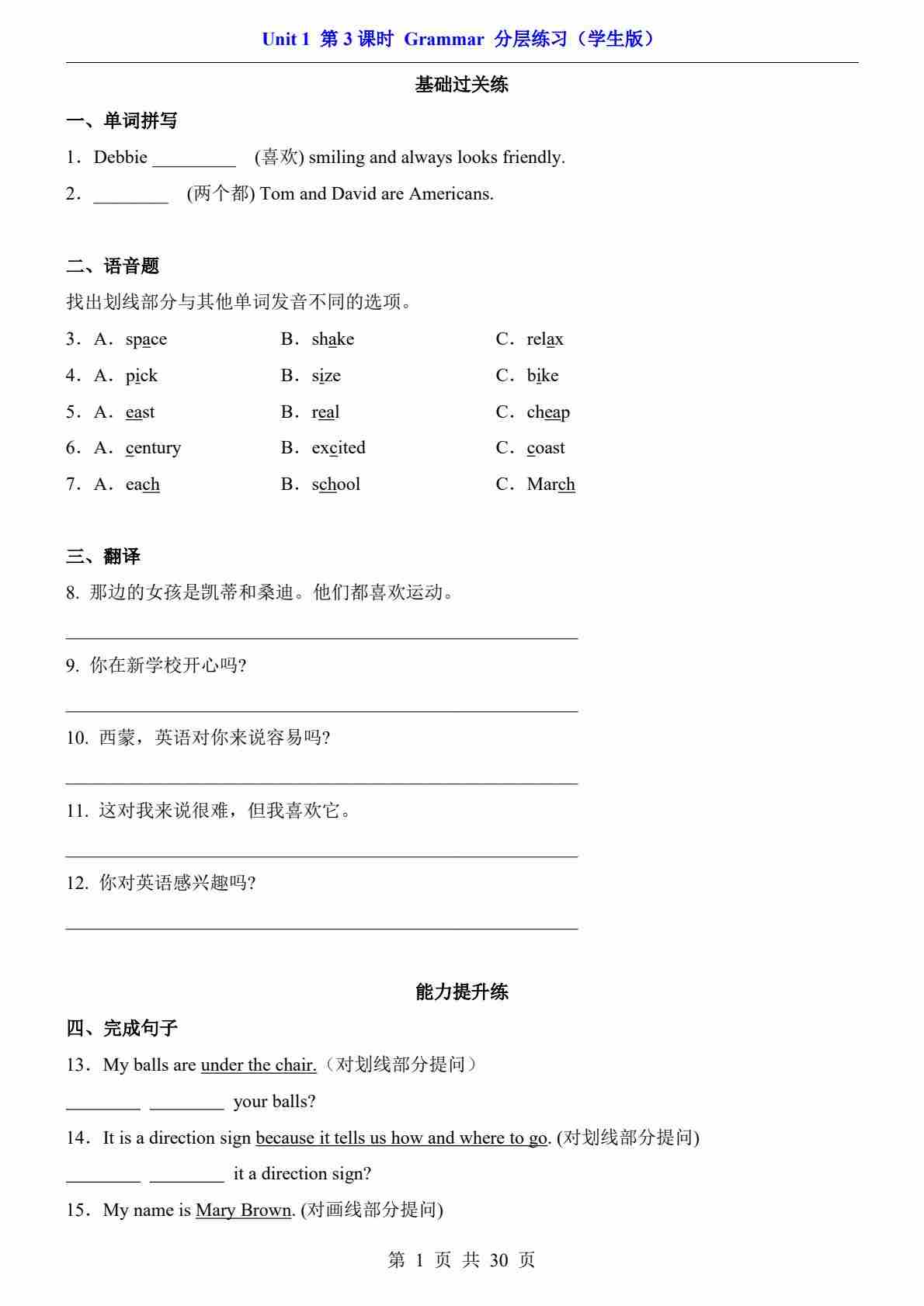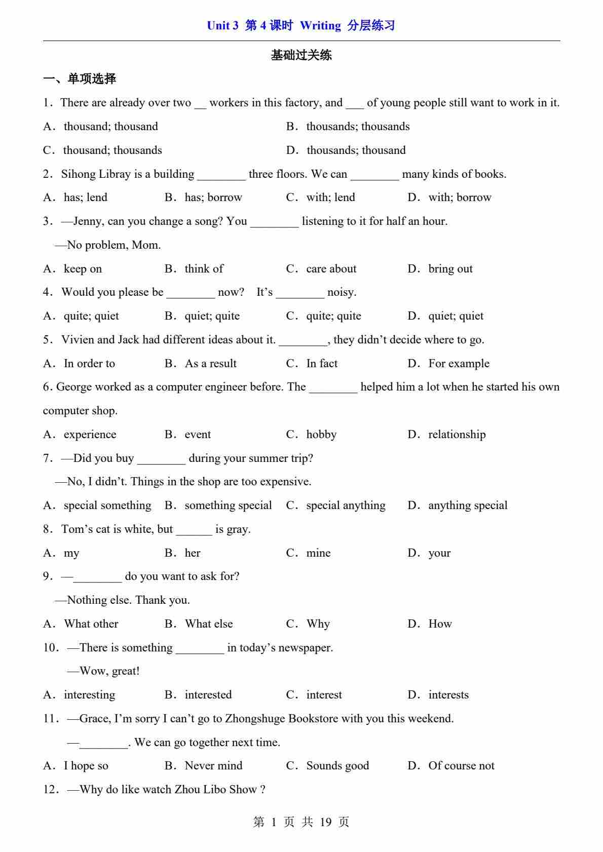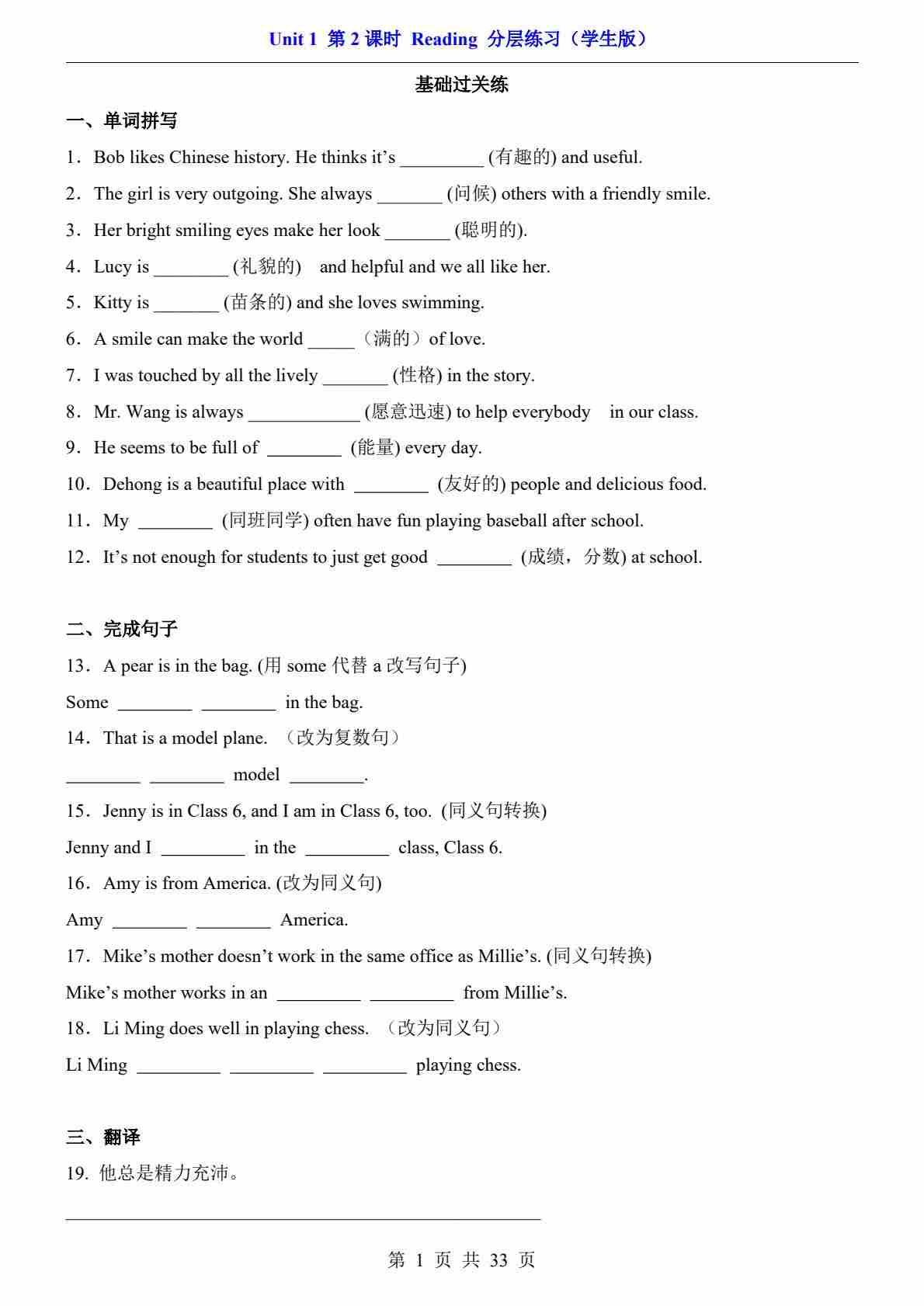 Unit 1 课时3 Grammar(分层练习)