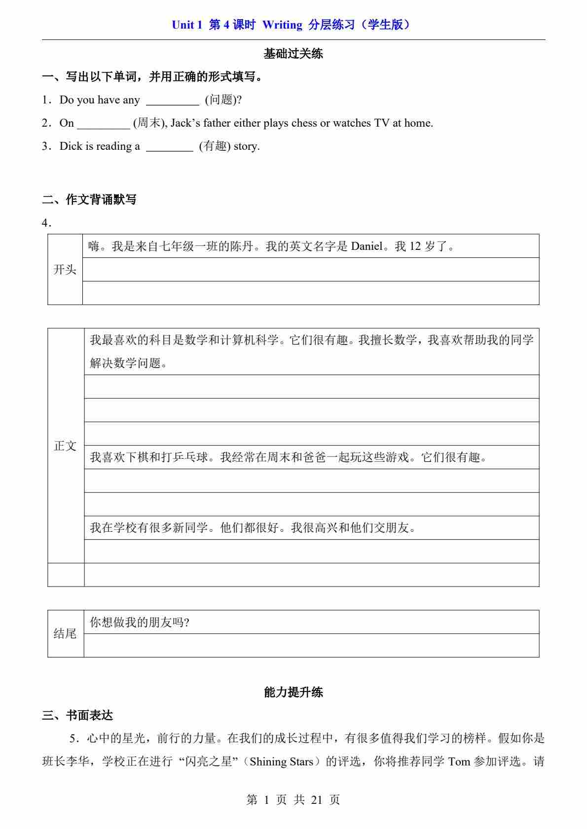 Unit 1 课时4 Writing(分层练习)
