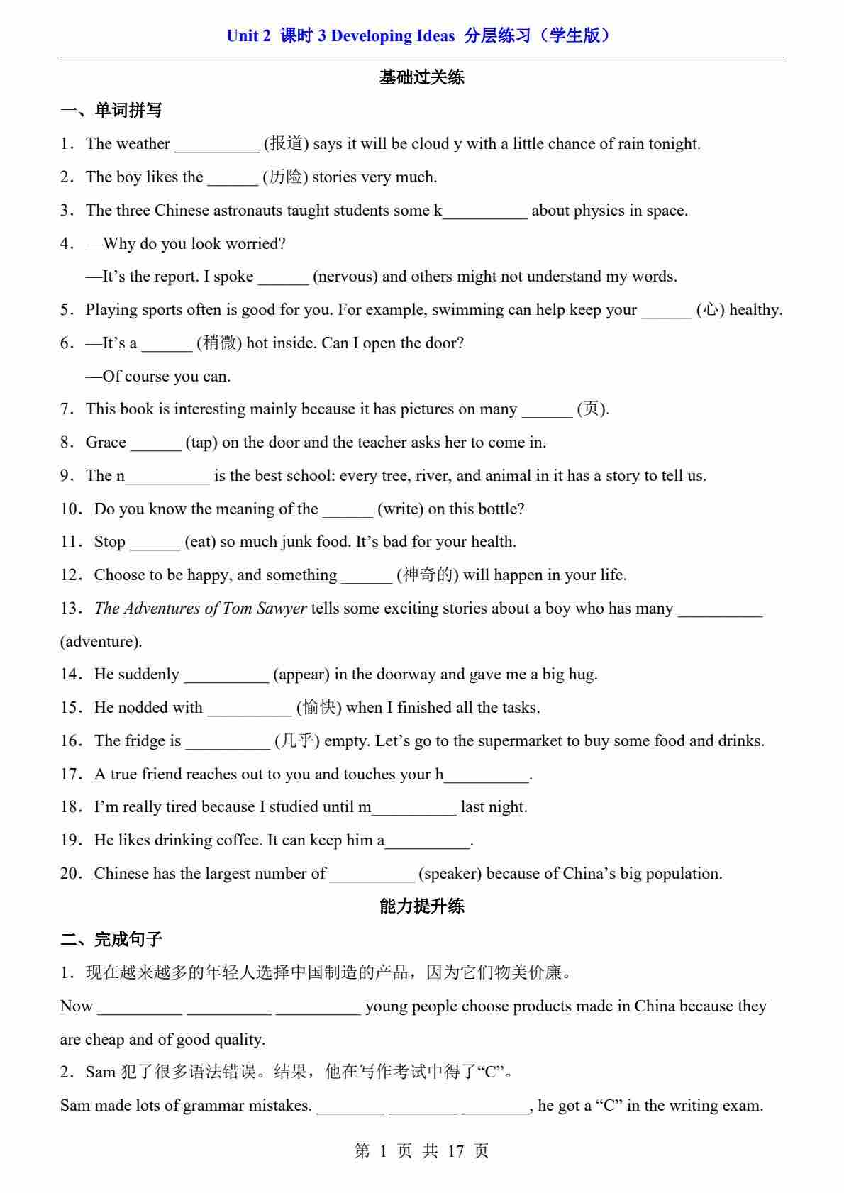 Unit 2 课时3 Developing ideas(分层练习)