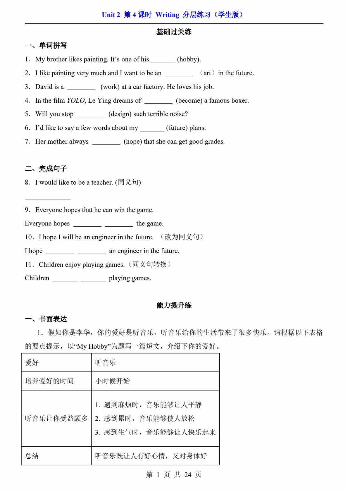 Unit 2 课时4 Writing(分层练习)