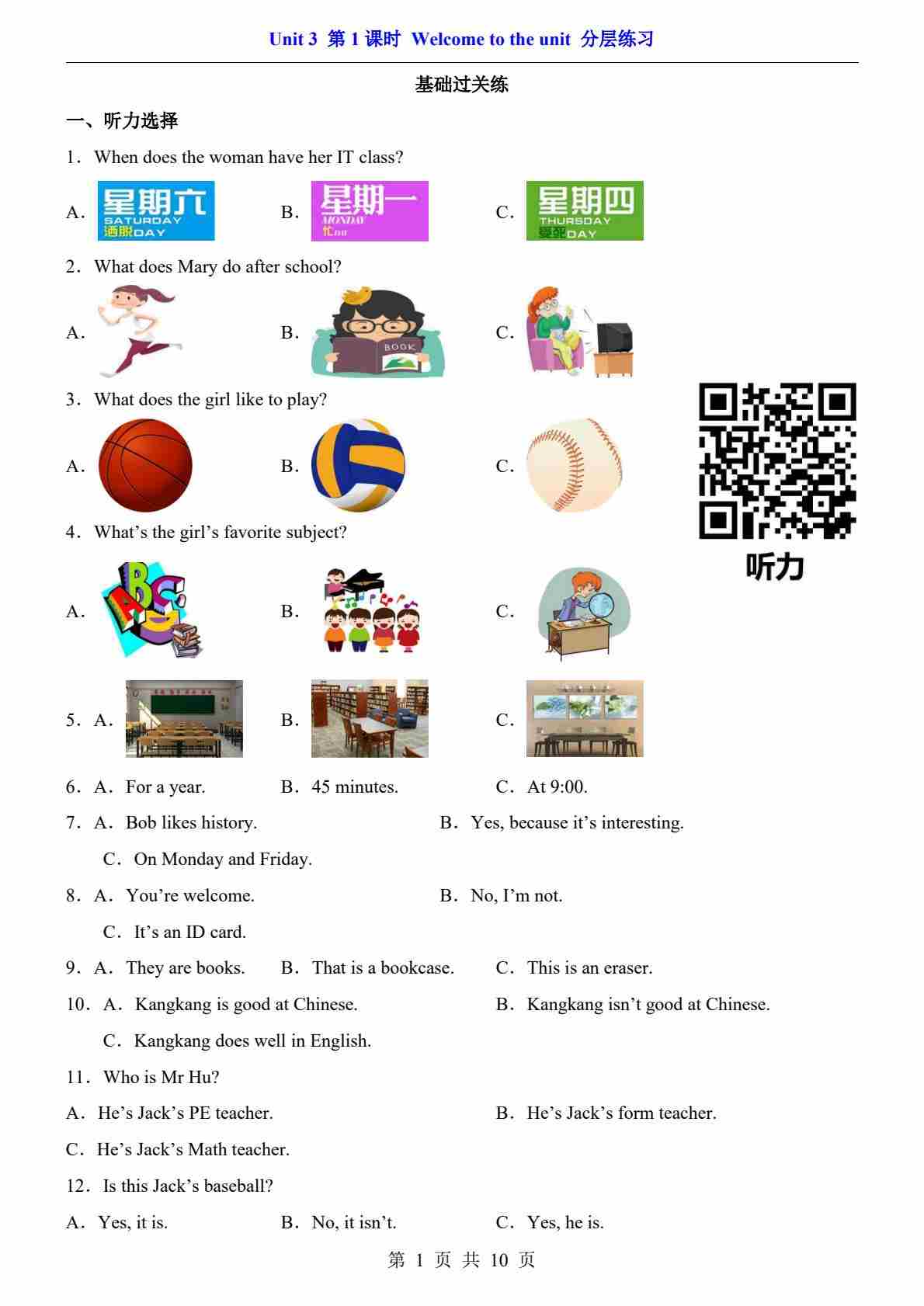Unit 3 课时1 Welcome to the unit(分层练习)