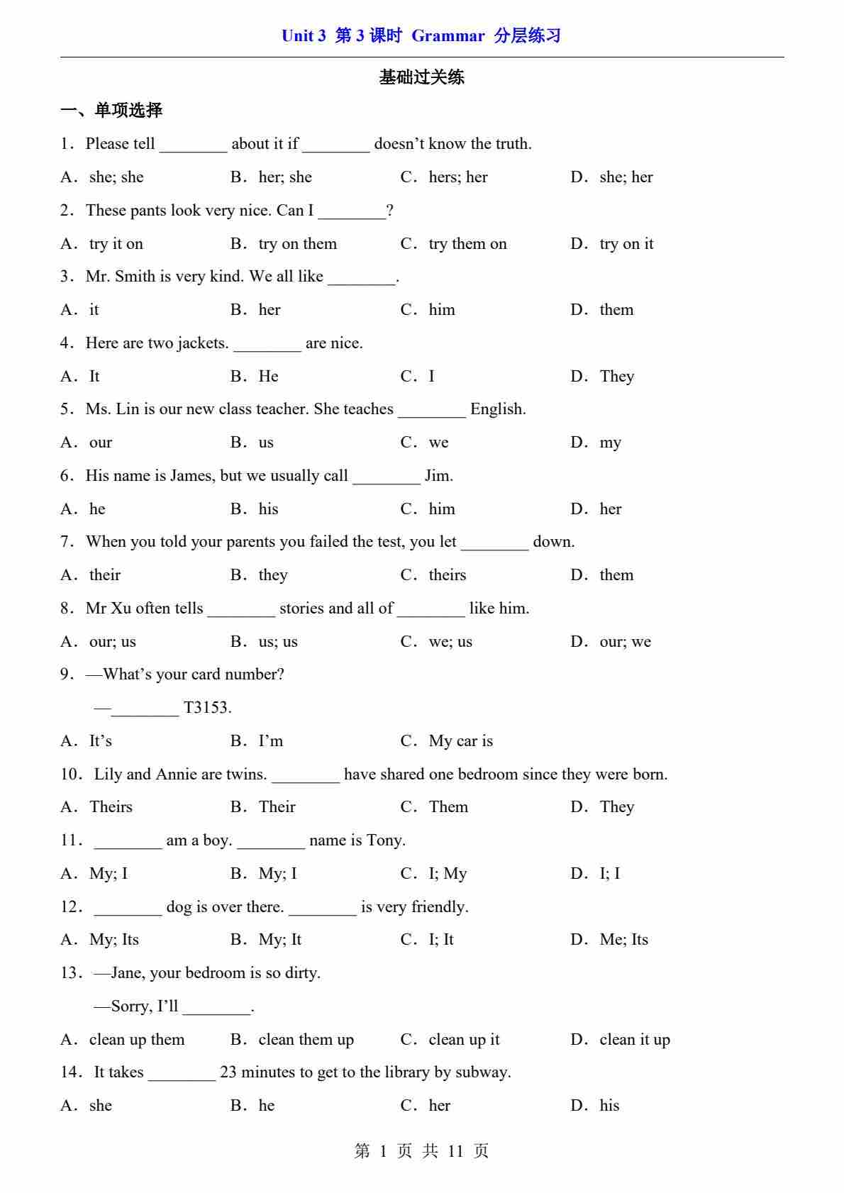 Unit 3 课时3 Grammar(分层练习)