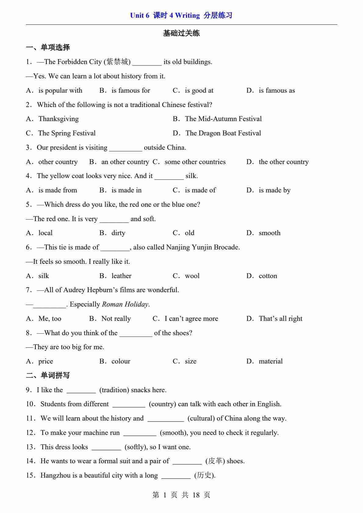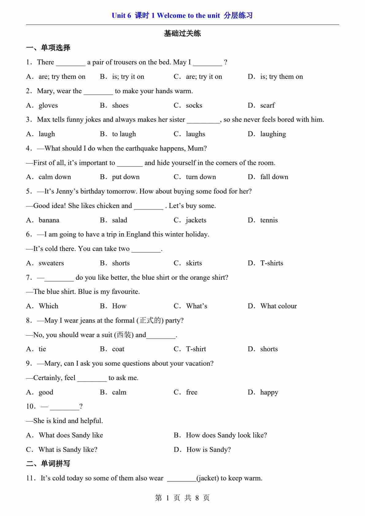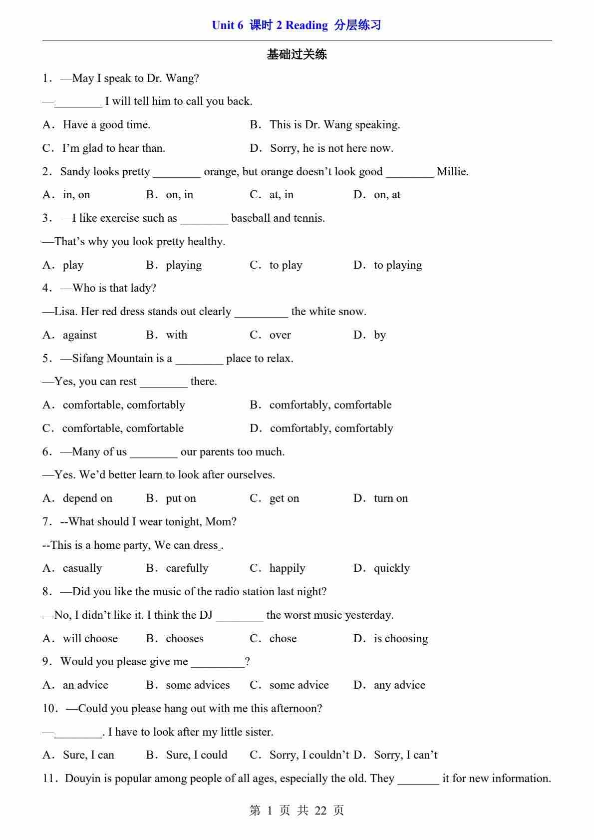 Unit 6 课时1 Welcome to the unit(分层练习)