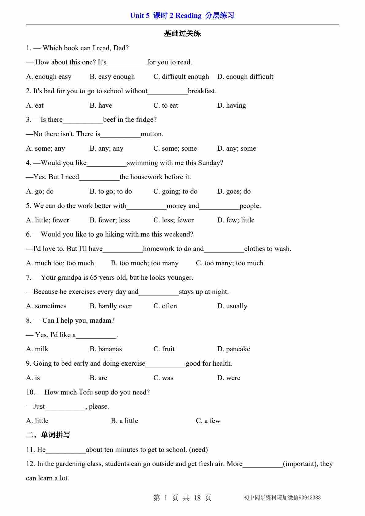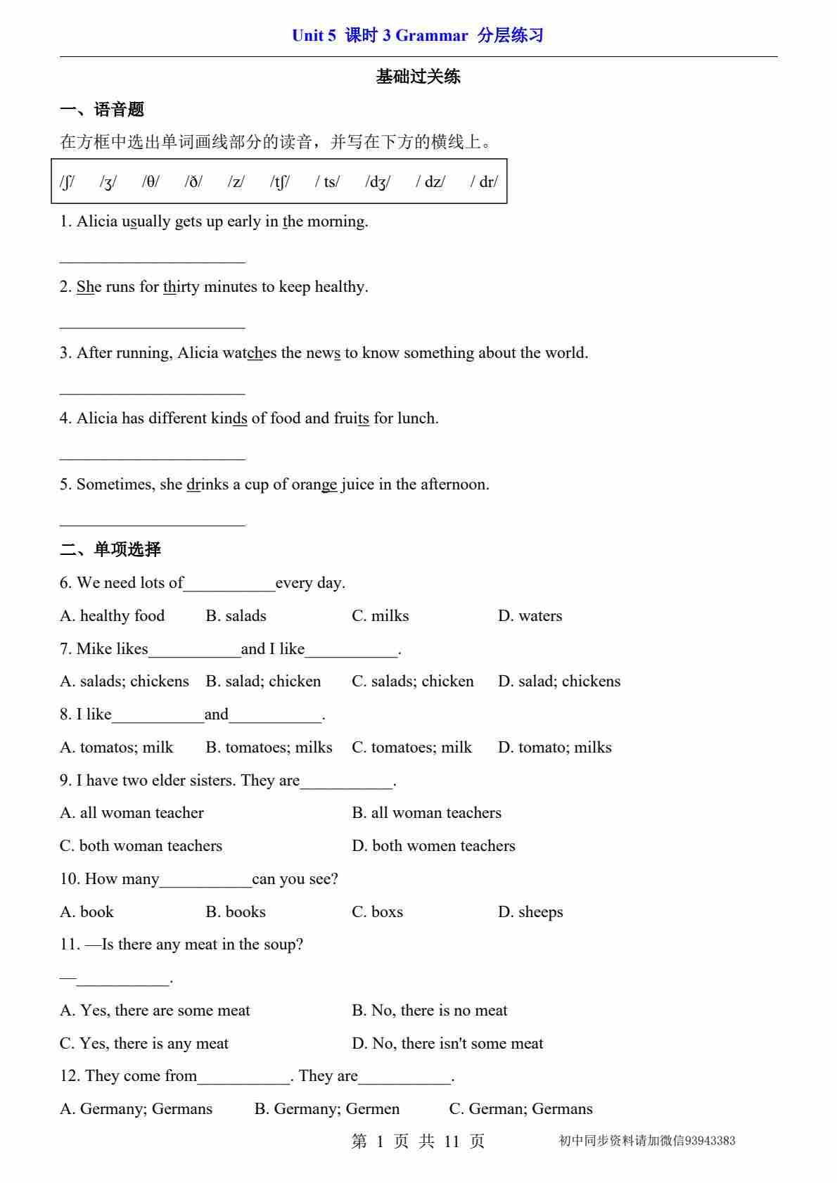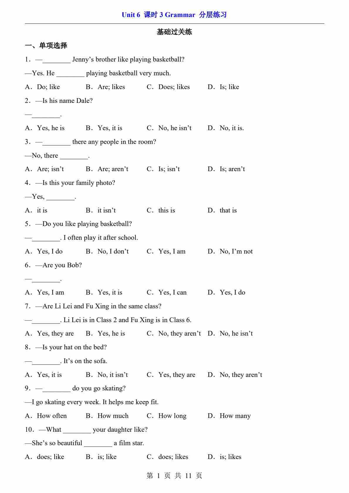 Unit 6 课时1 Welcome to the unit(分层练习)