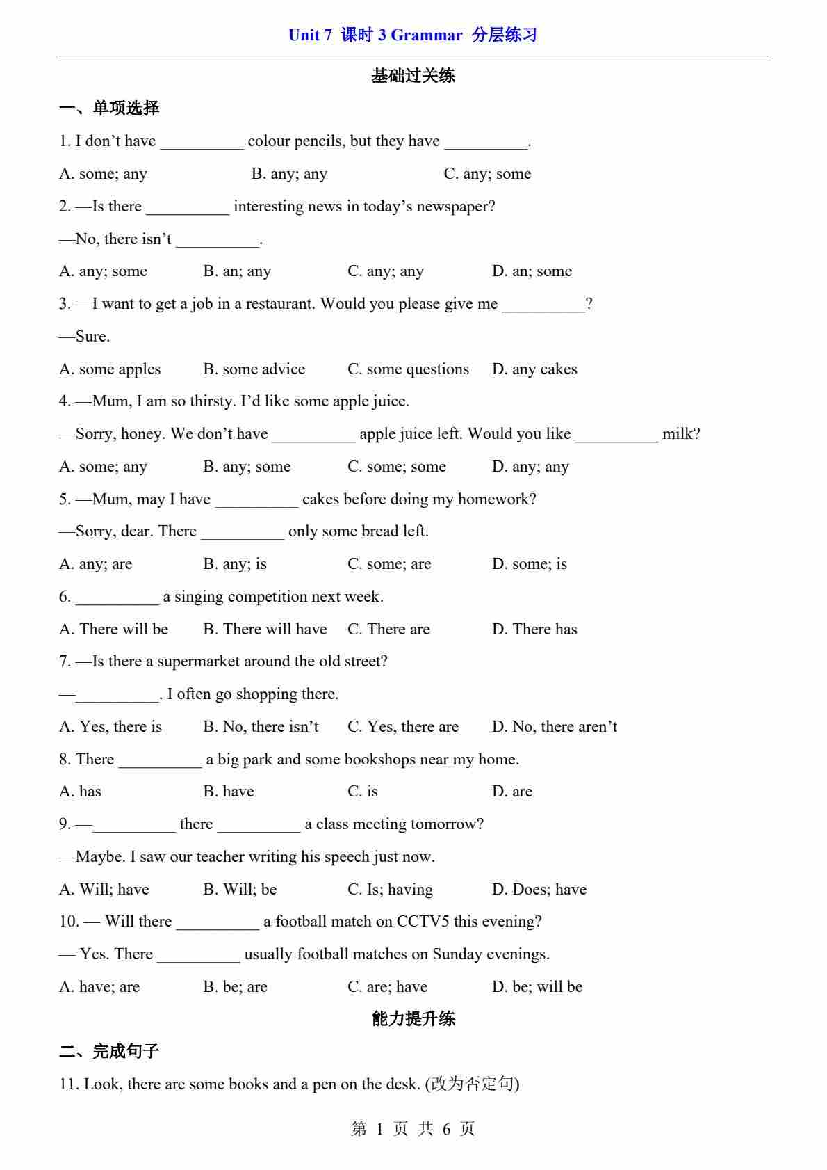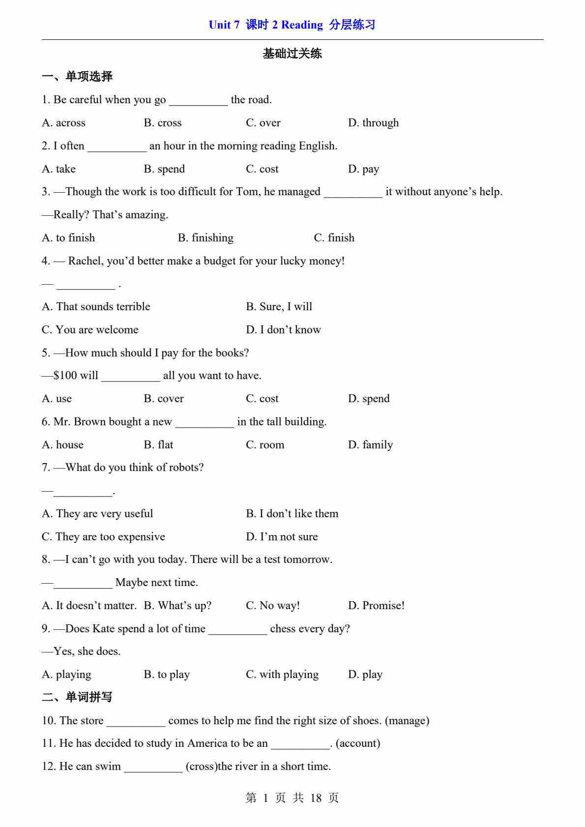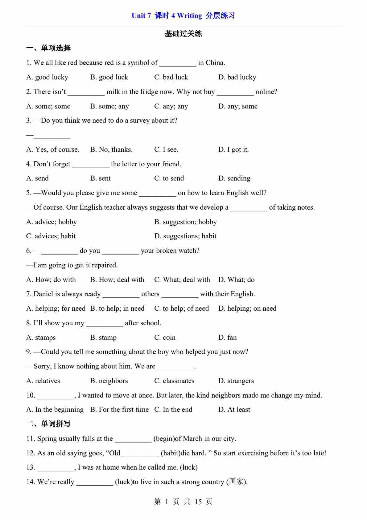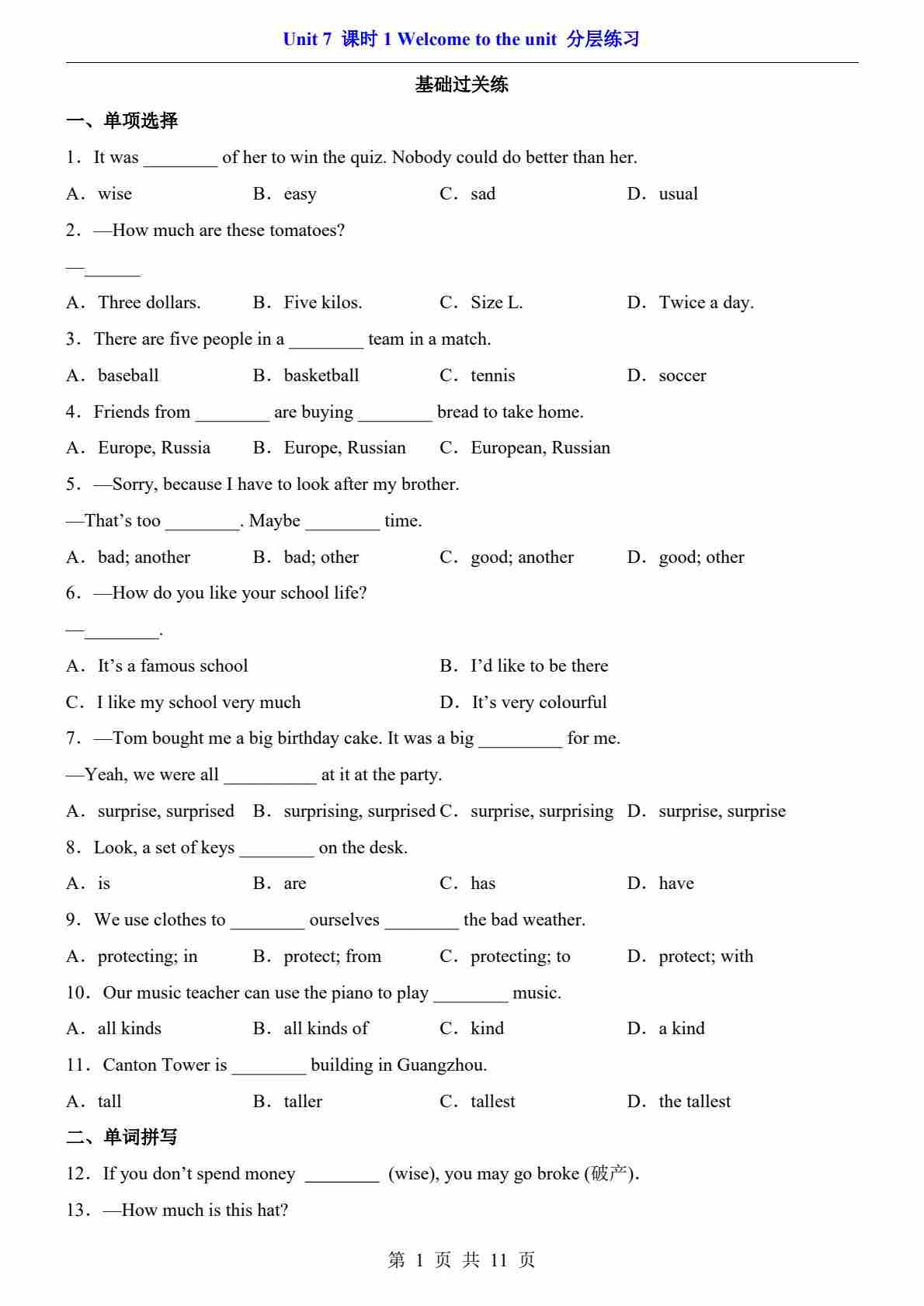 Unit 7 课时1 Welcome to the unit(分层练习)