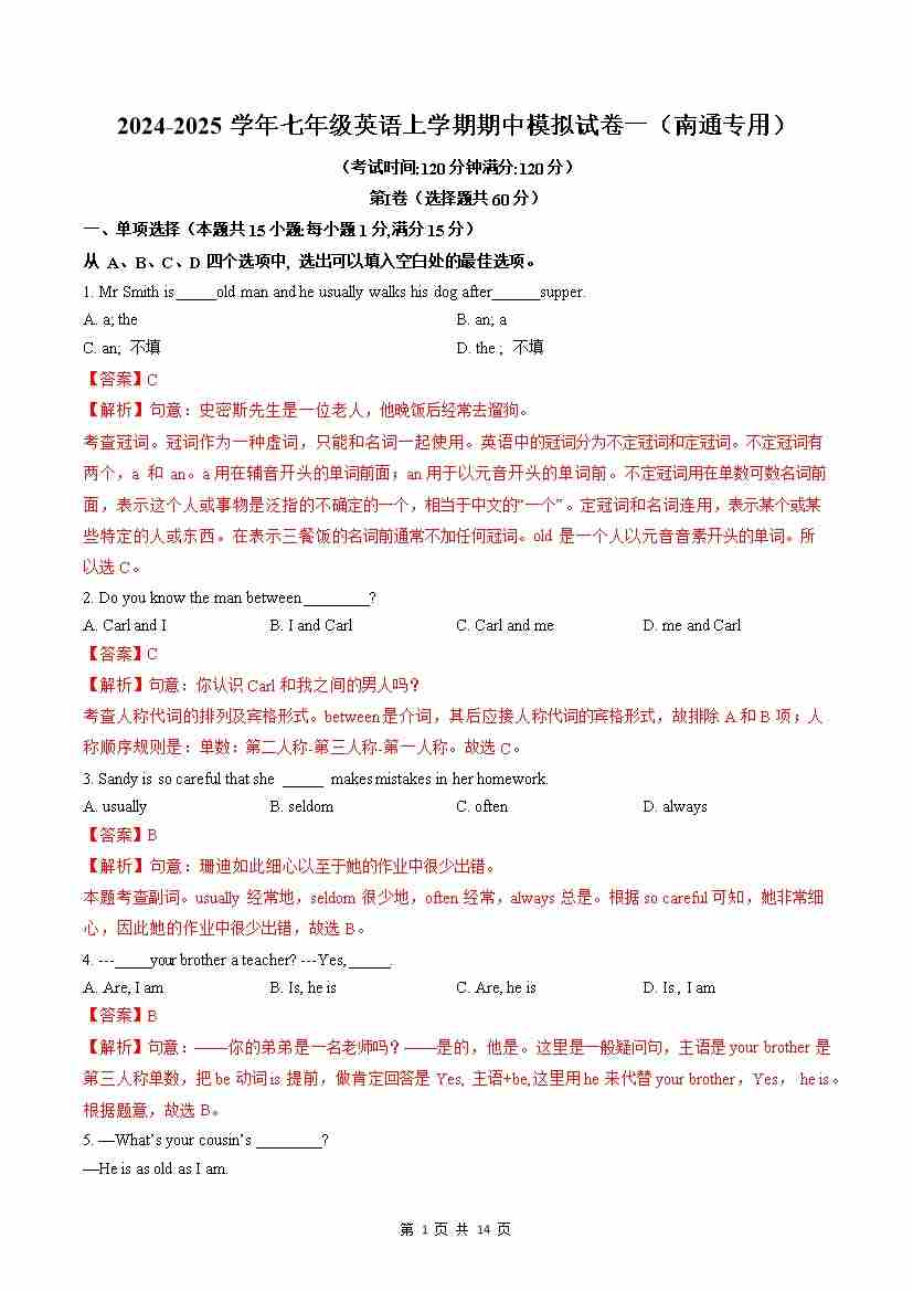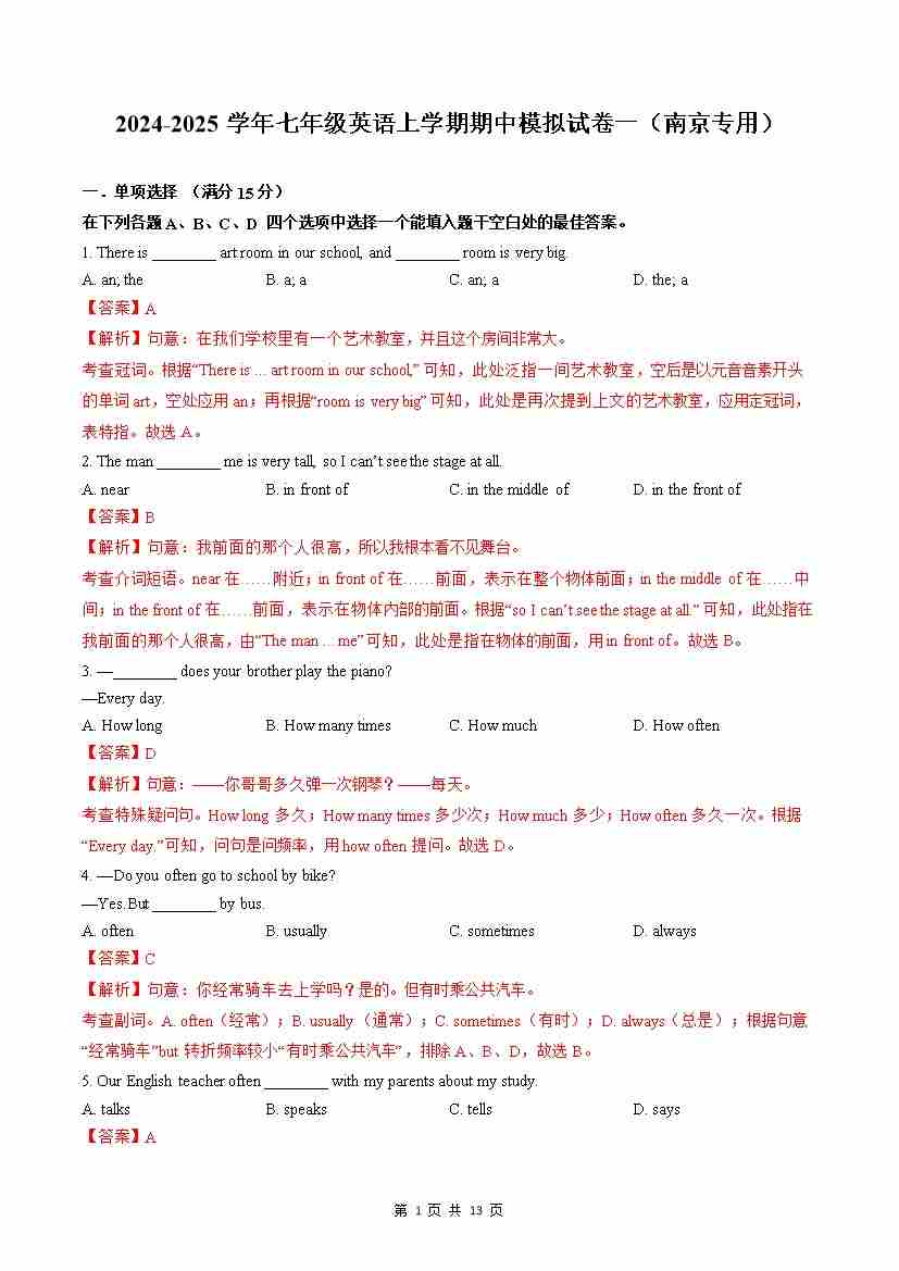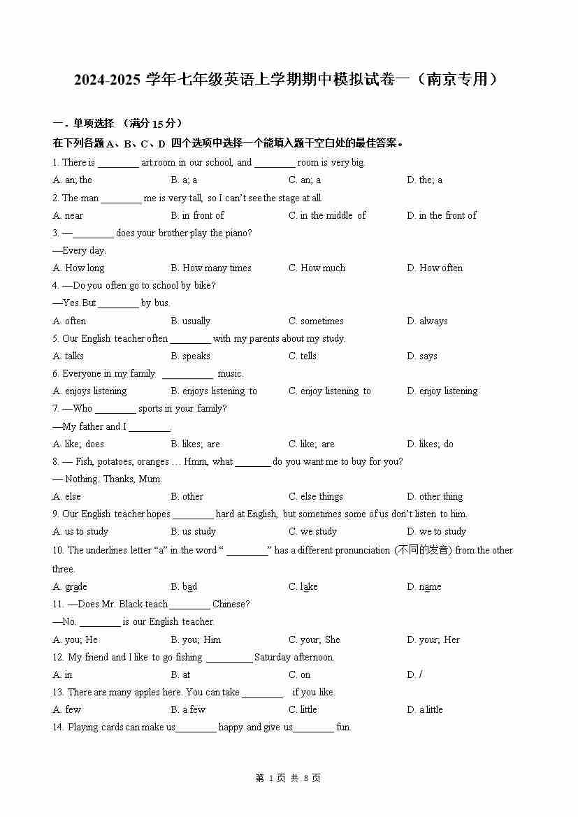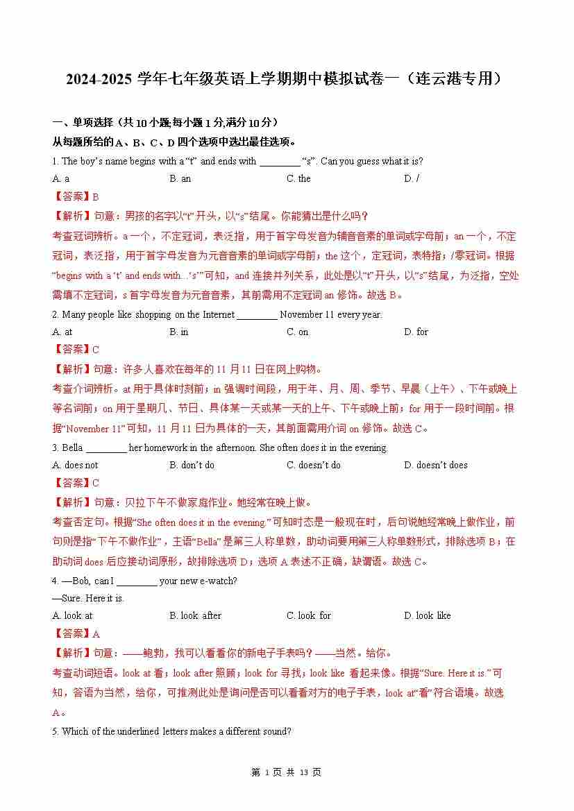 Unit 7 课时1 Welcome to the unit(分层练习)
