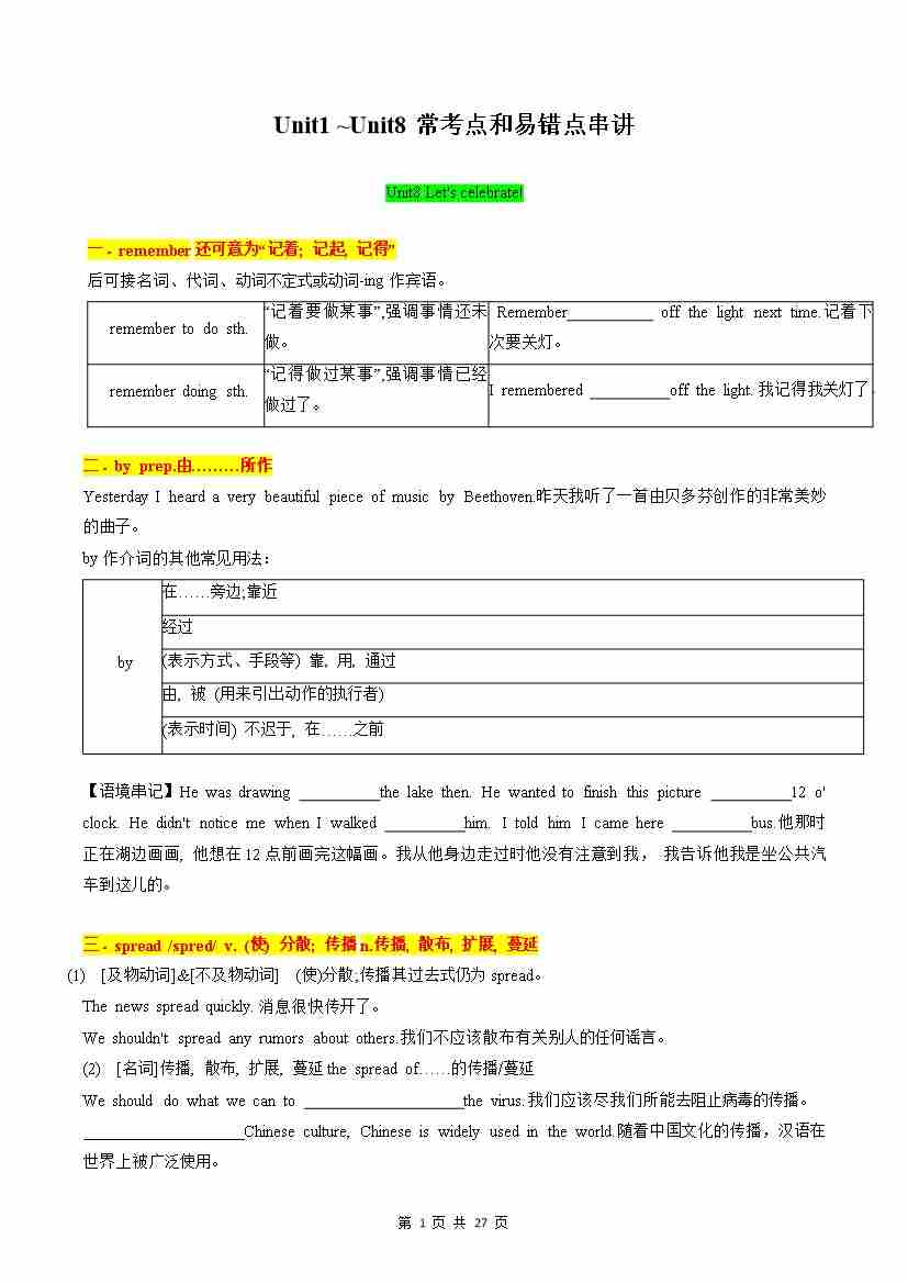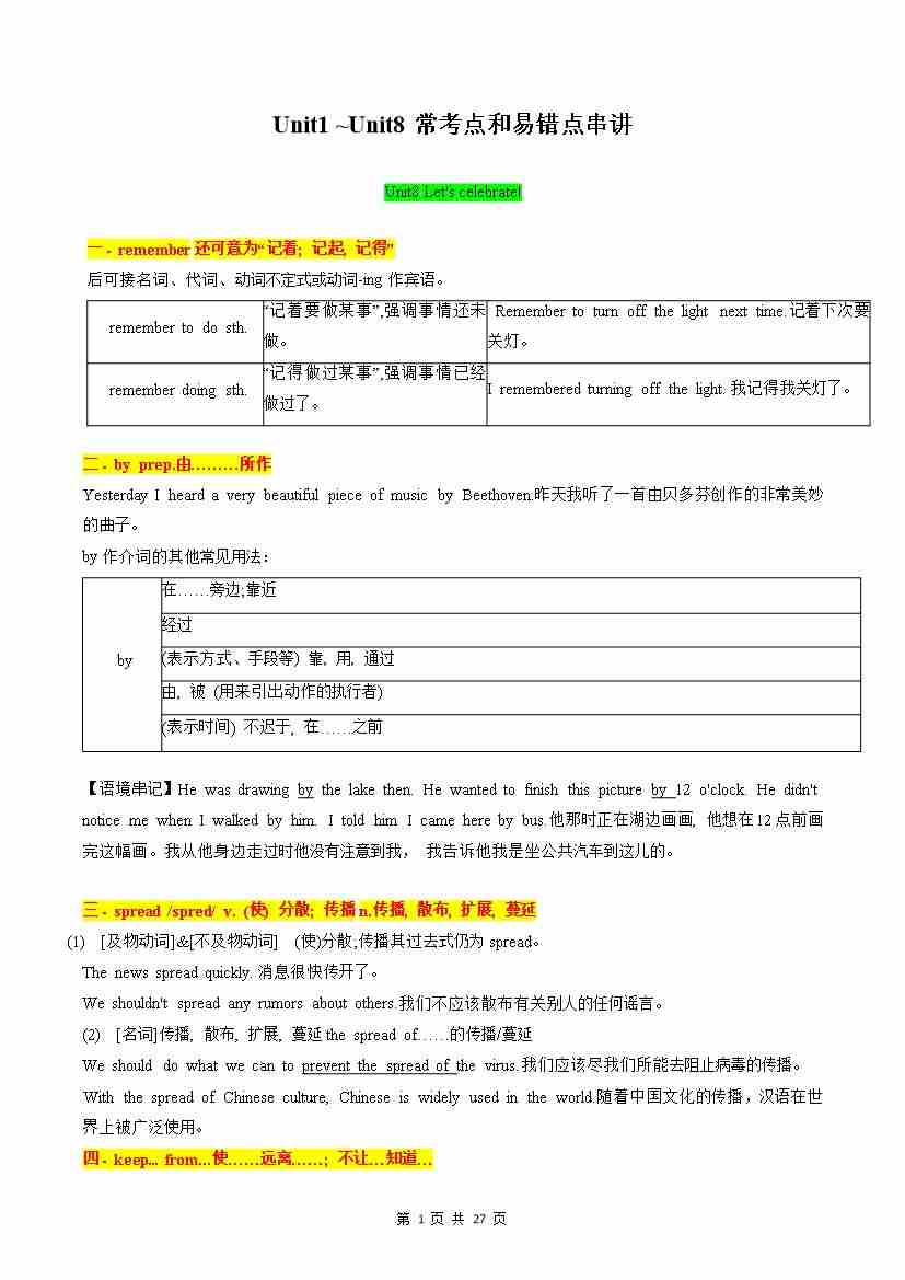 专题03 Unit1 ~Unit8常考点和易错点串讲(记忆版)