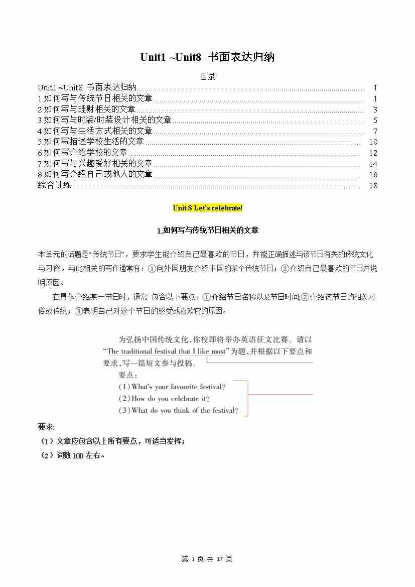 专题04 Unit1 ~Unit8 书面表达归纳(记忆版)