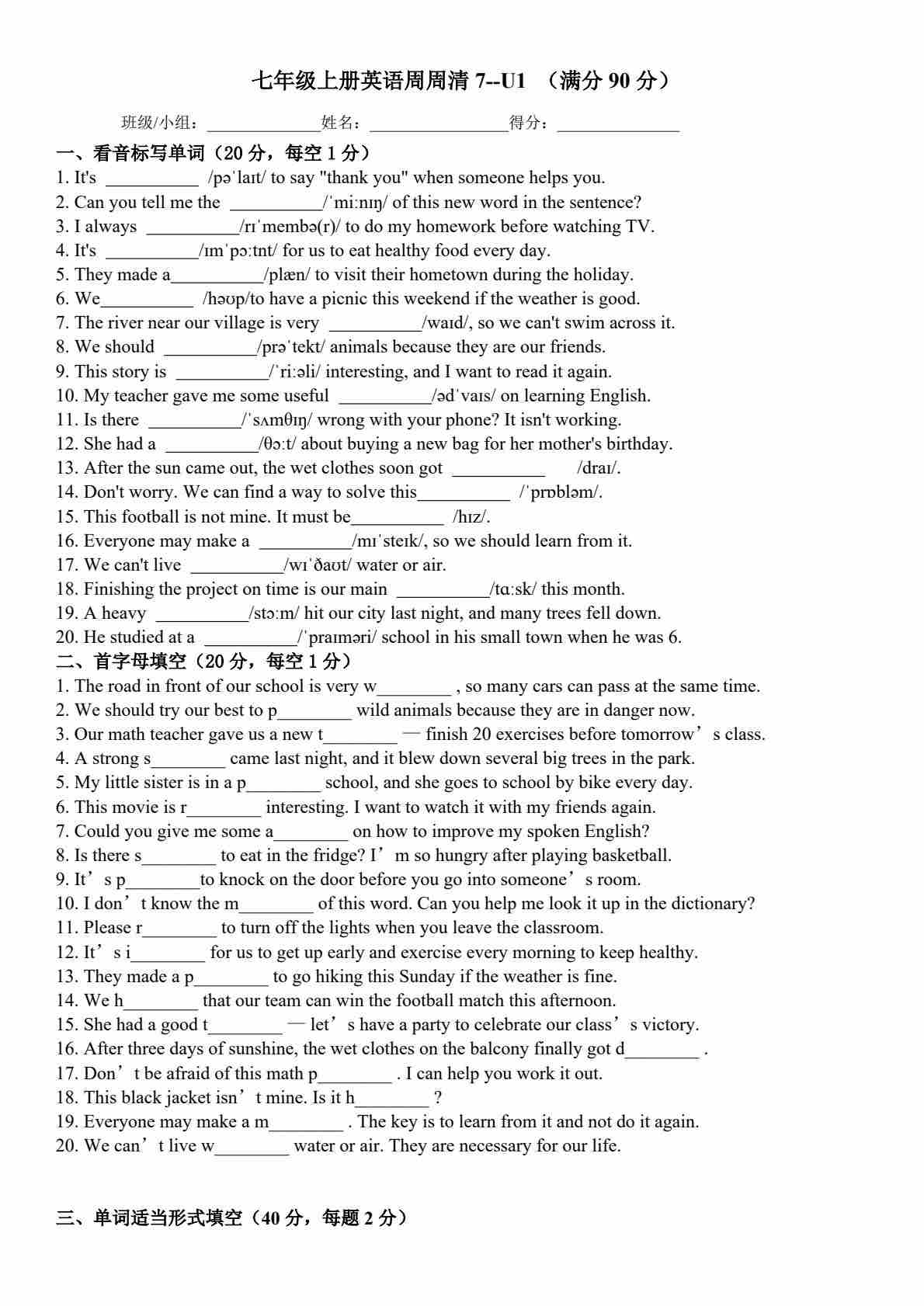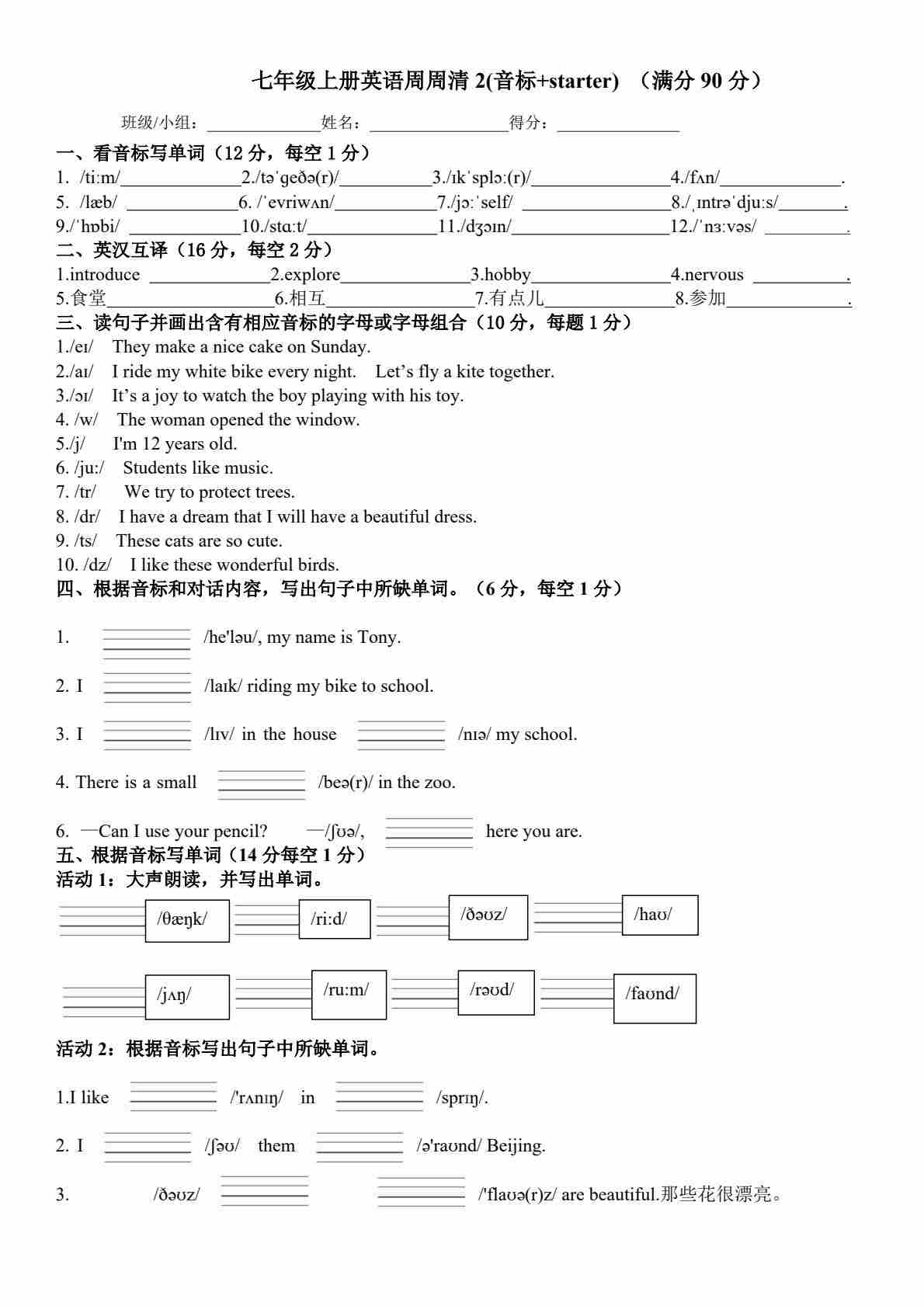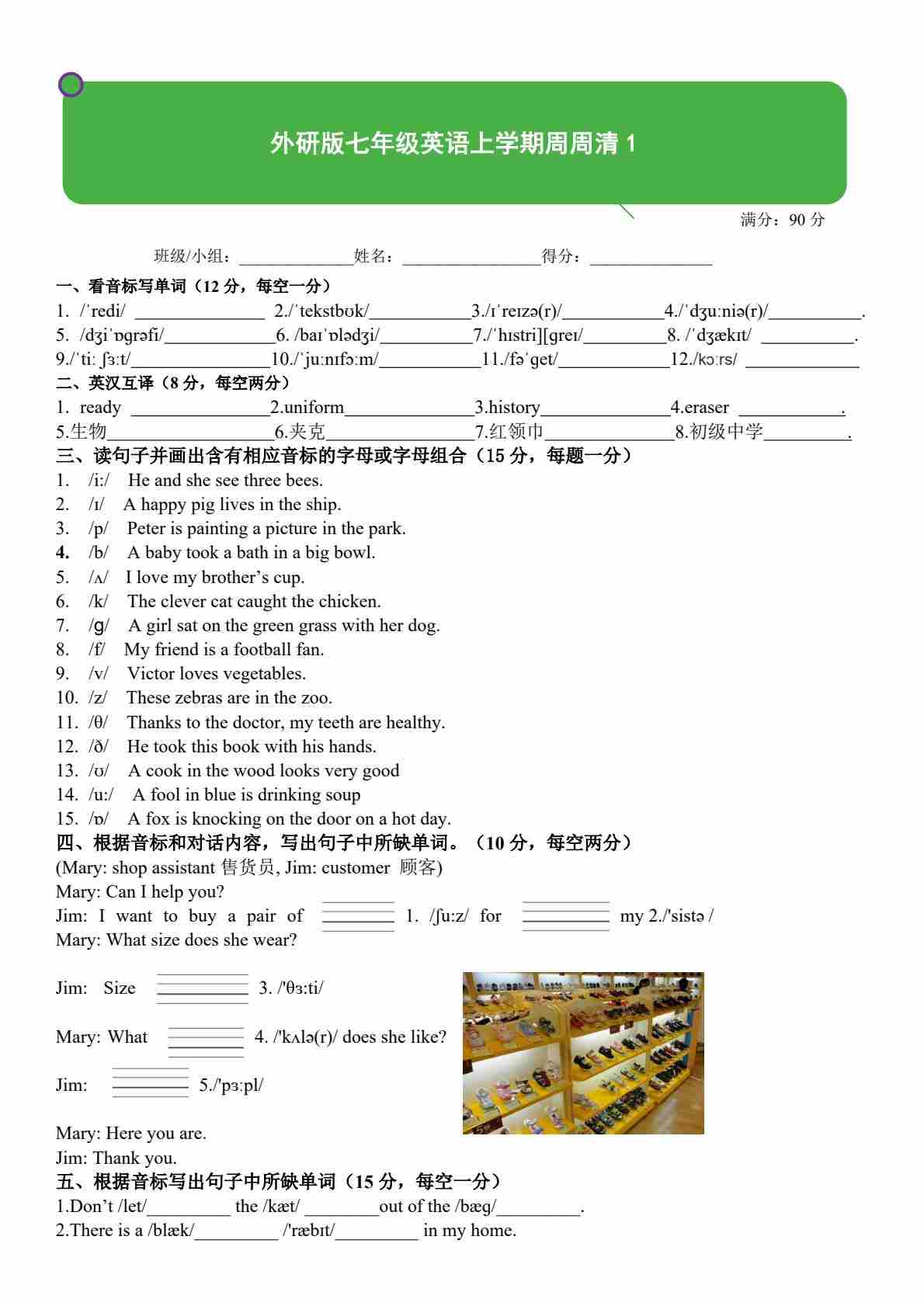 25秋外研七上英语练习题一一周周清2(含答案)