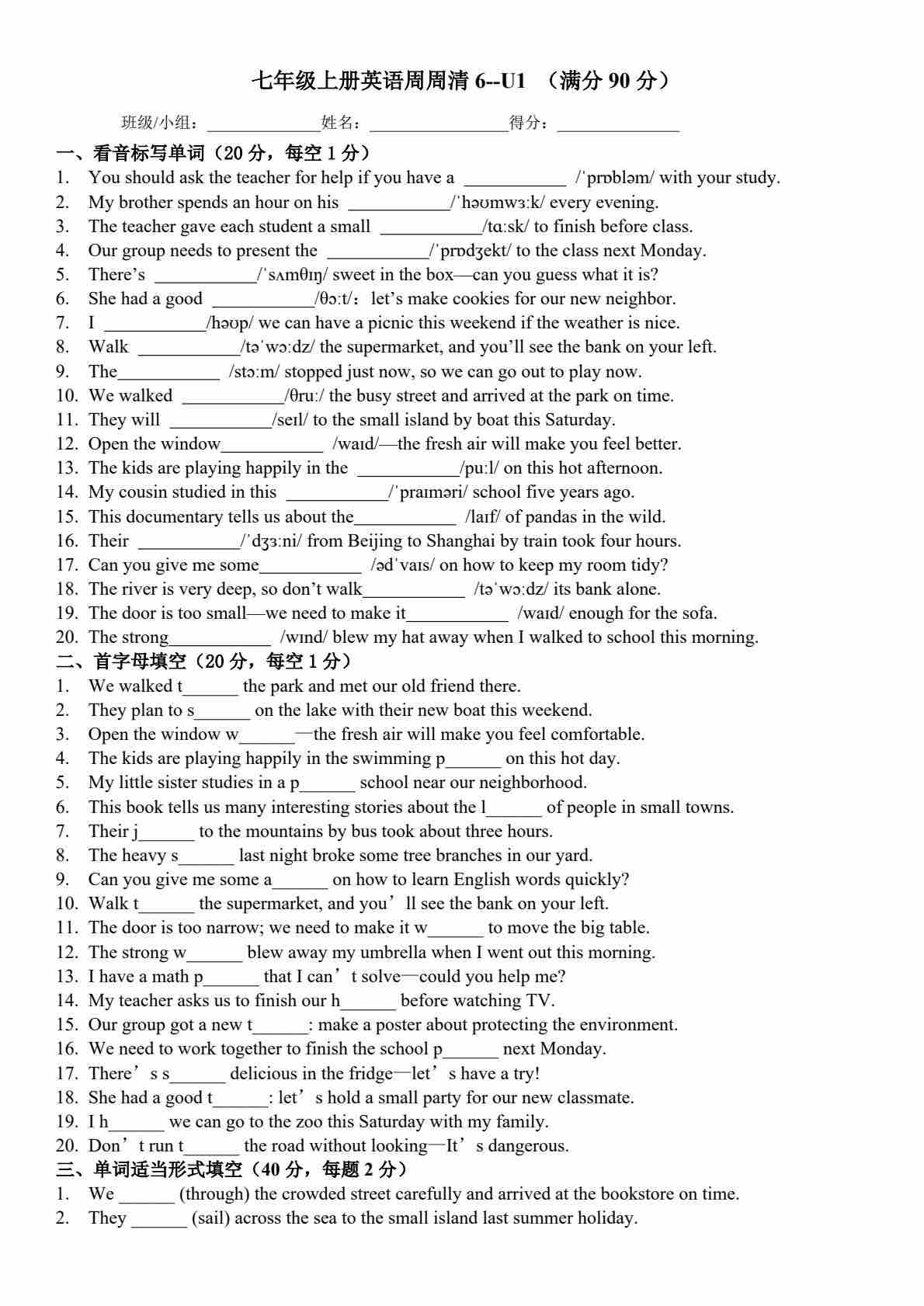 习题周周清