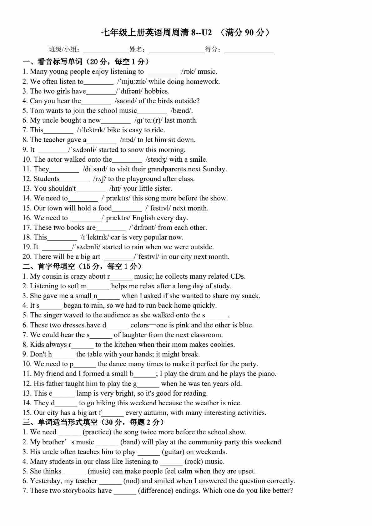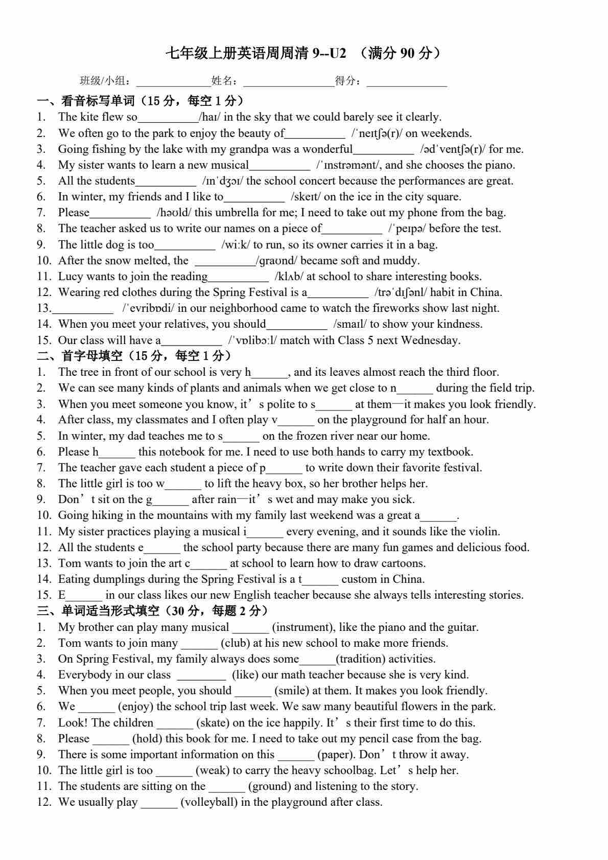 25秋外研七上英语练习题一一周周清9-Unit 2 More than fun(含答案)