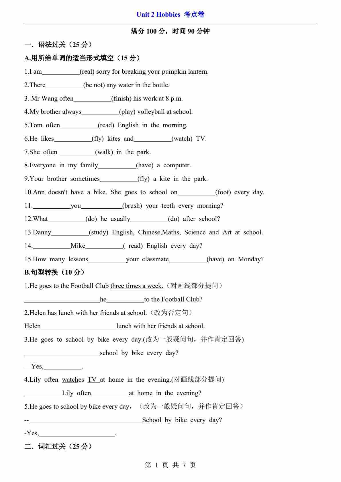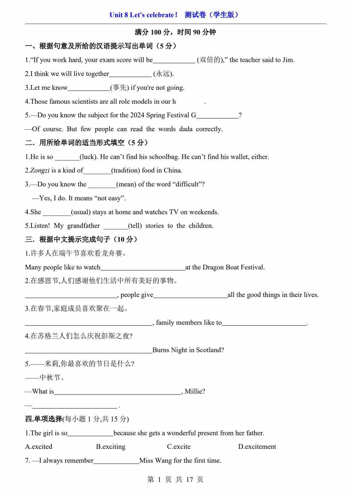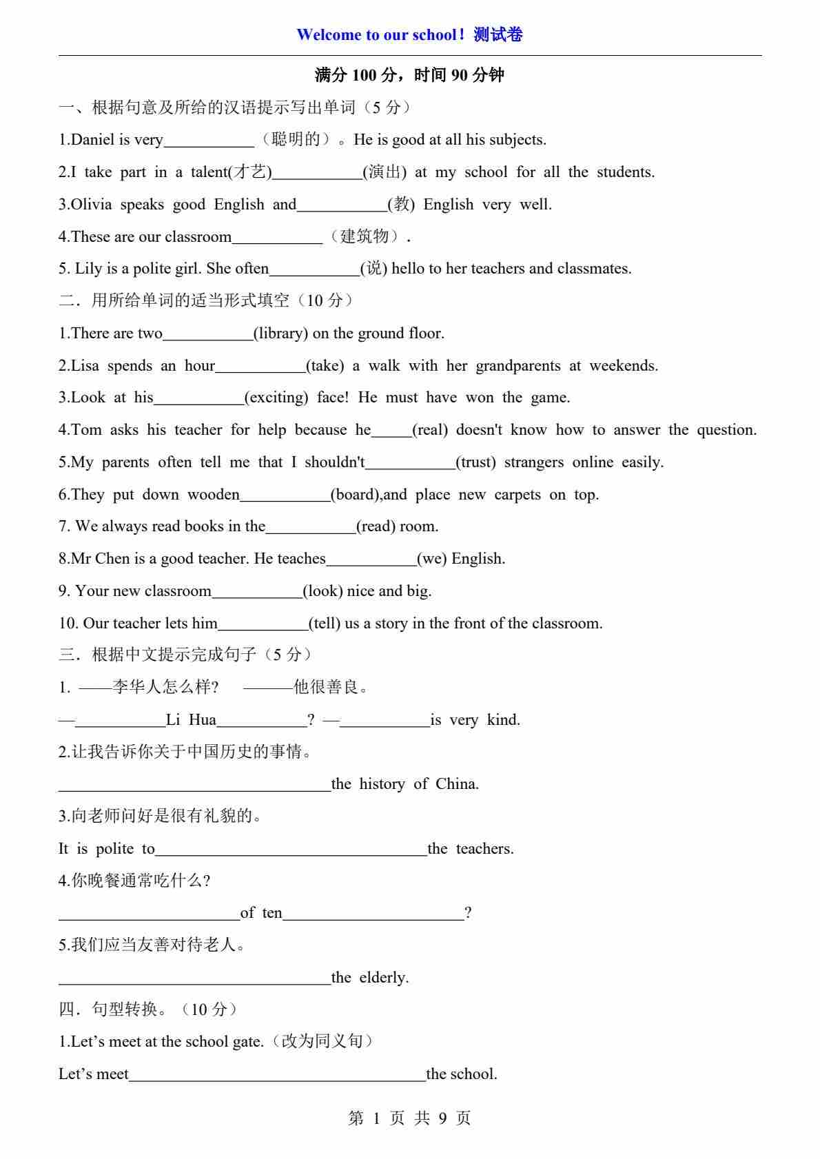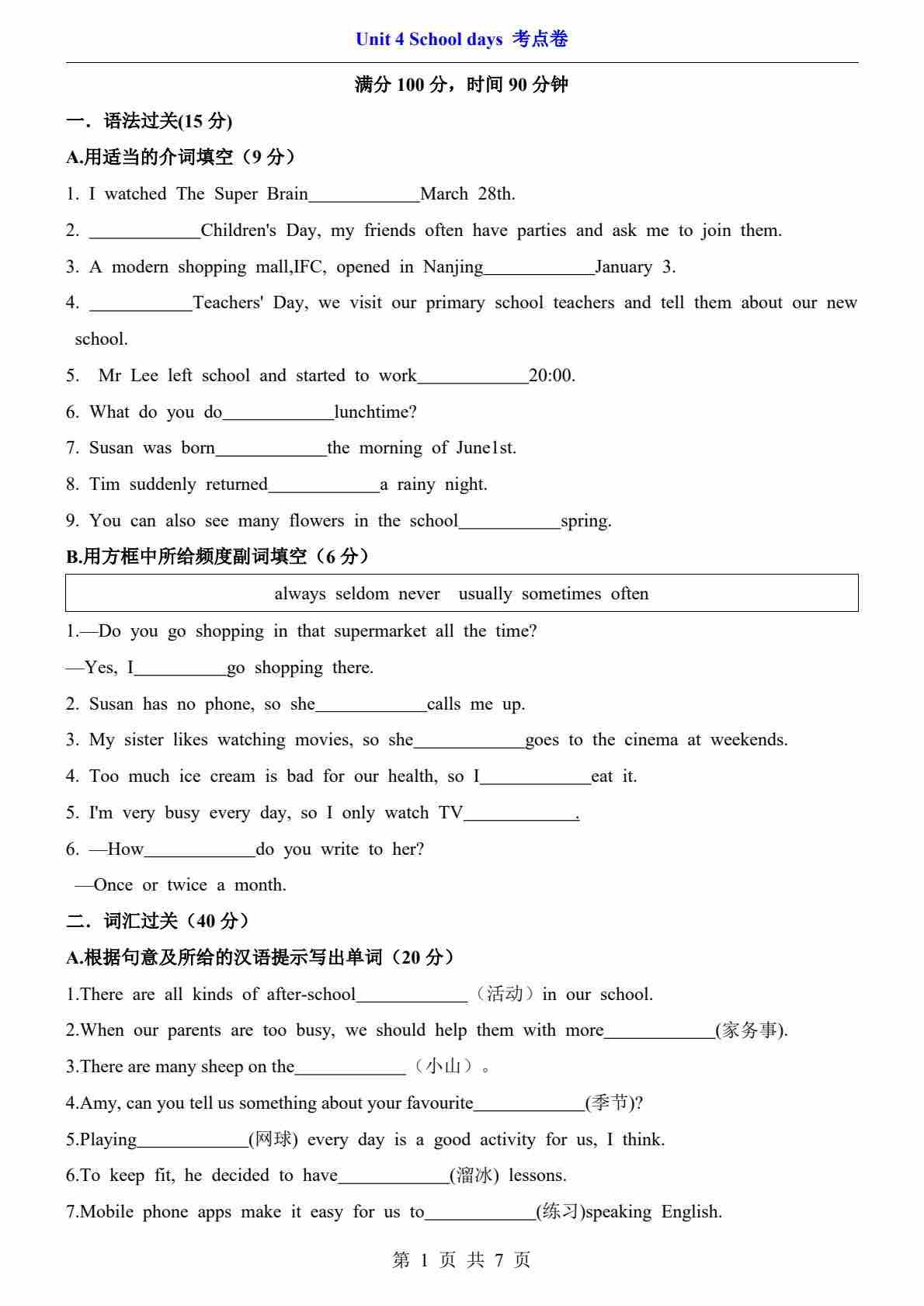 【同步100分测试】Unit1 This is me!单元测试(原卷版)-2024-2025学年七年级上册同步单元测试(牛津译林版2024)