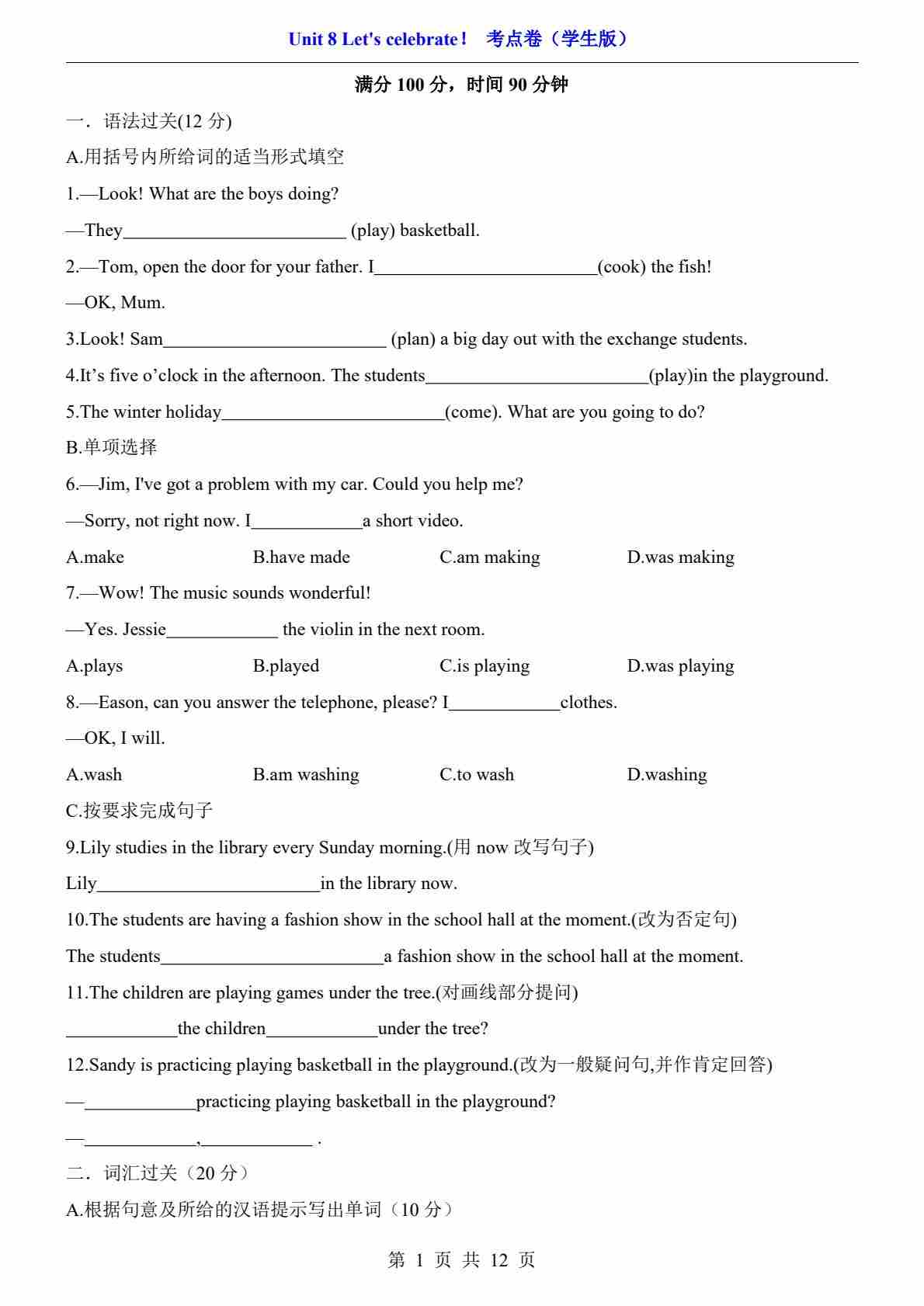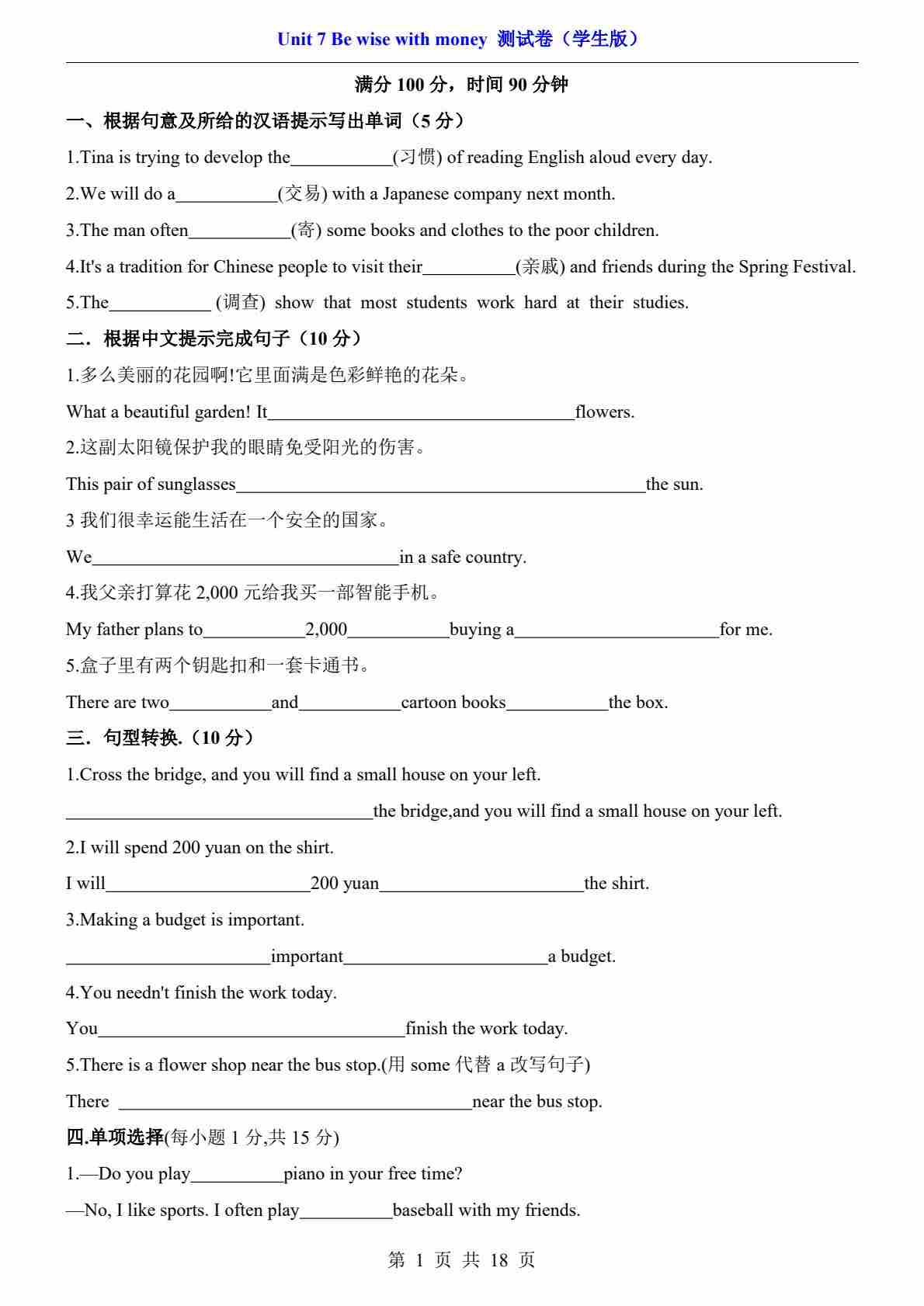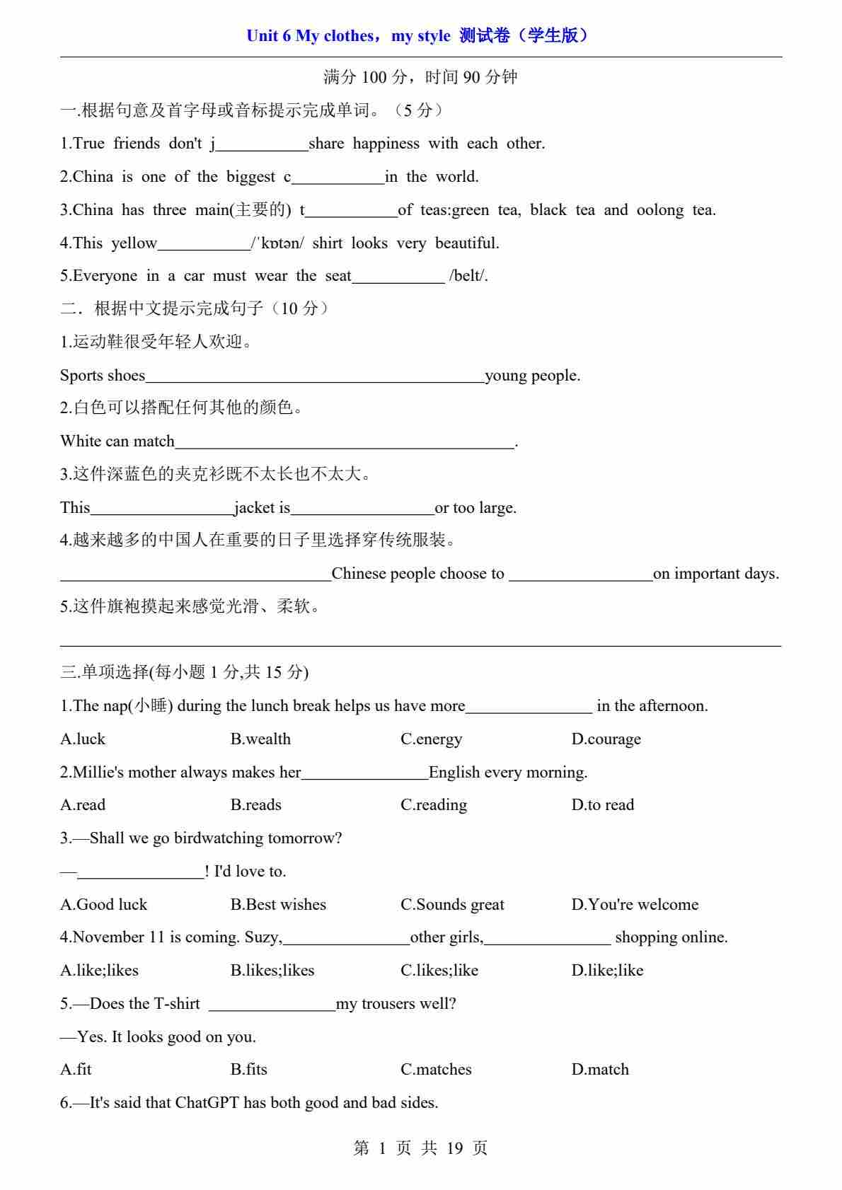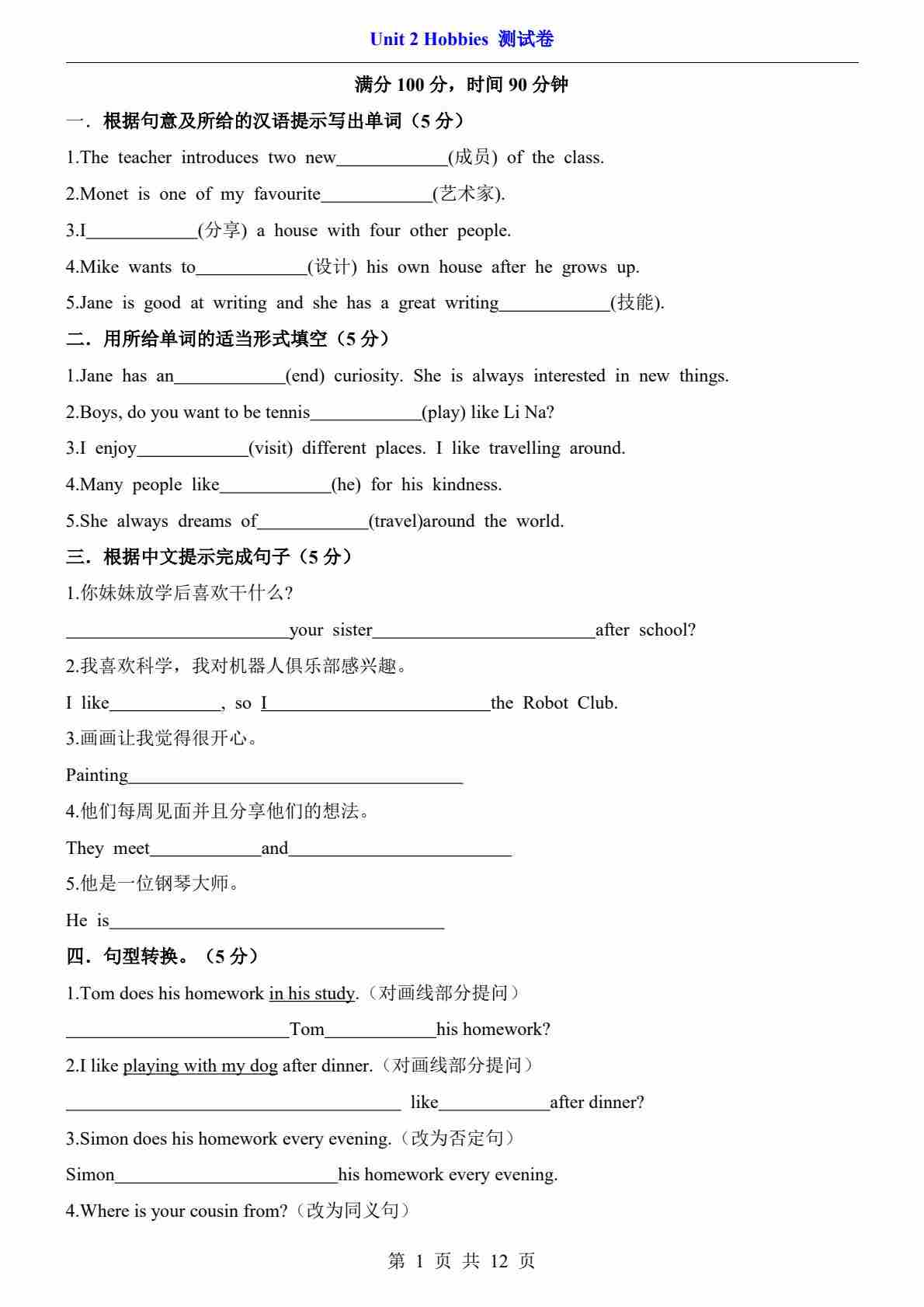 【同步100分测试】Unit1 This is me!单元测试(原卷版)-2024-2025学年七年级上册同步单元测试(牛津译林版2024)