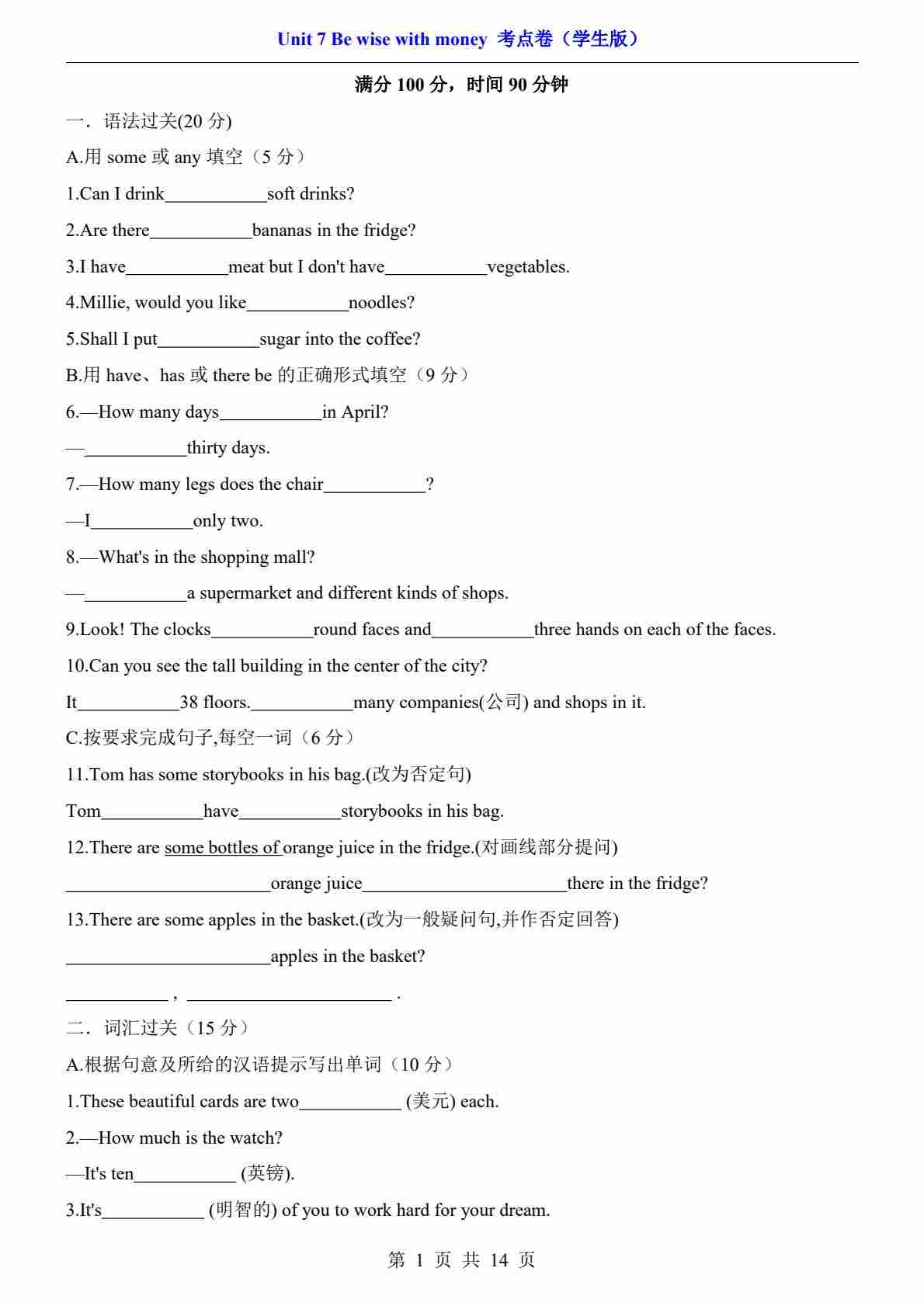 七年级英语第三次月考卷(考试版A4)【测试范围:七上Units 5~6】(译林版2024)
