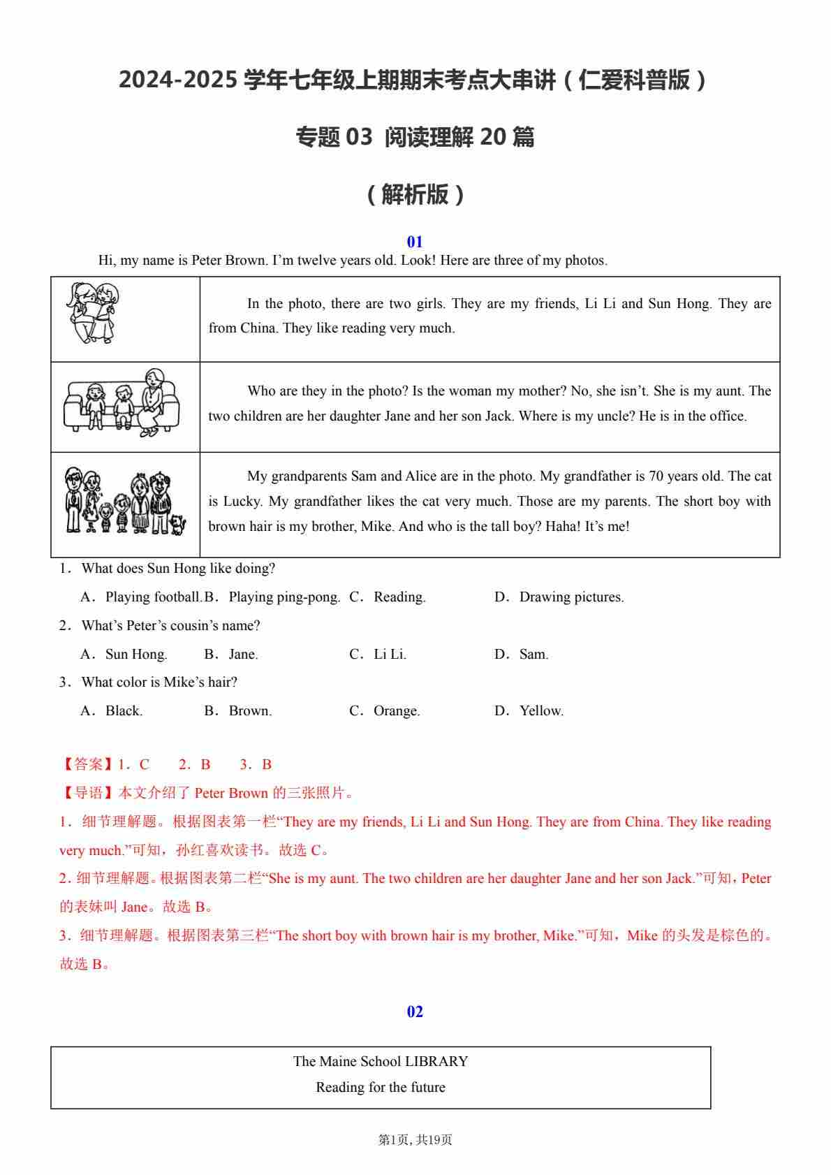 【七上仁爱英语】专题03 阅读理解20篇【考题猜想】(解析版)