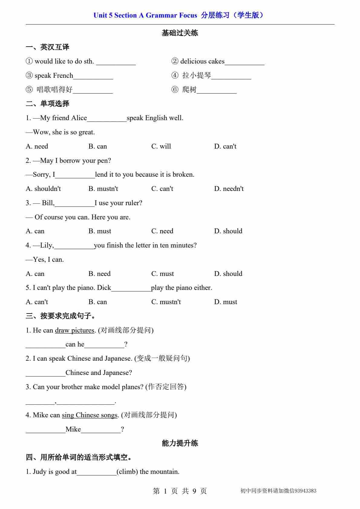 Unit 5 Section A(Grammar Focus)(分层练习)