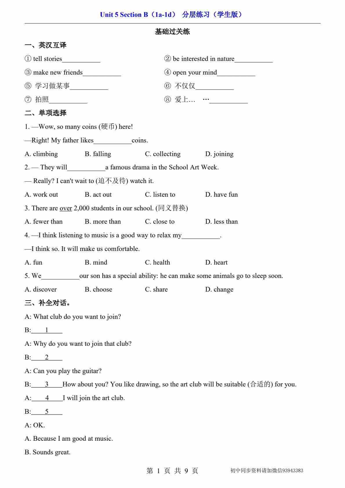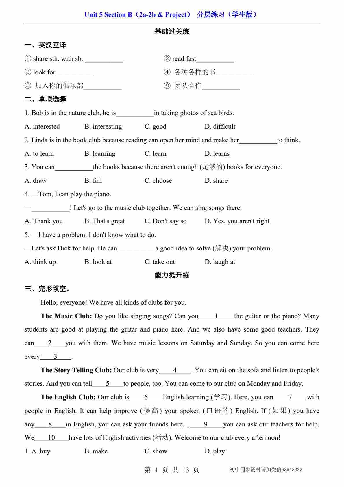 Unit 5 Section B(2a-2b & Project)(分层练习)