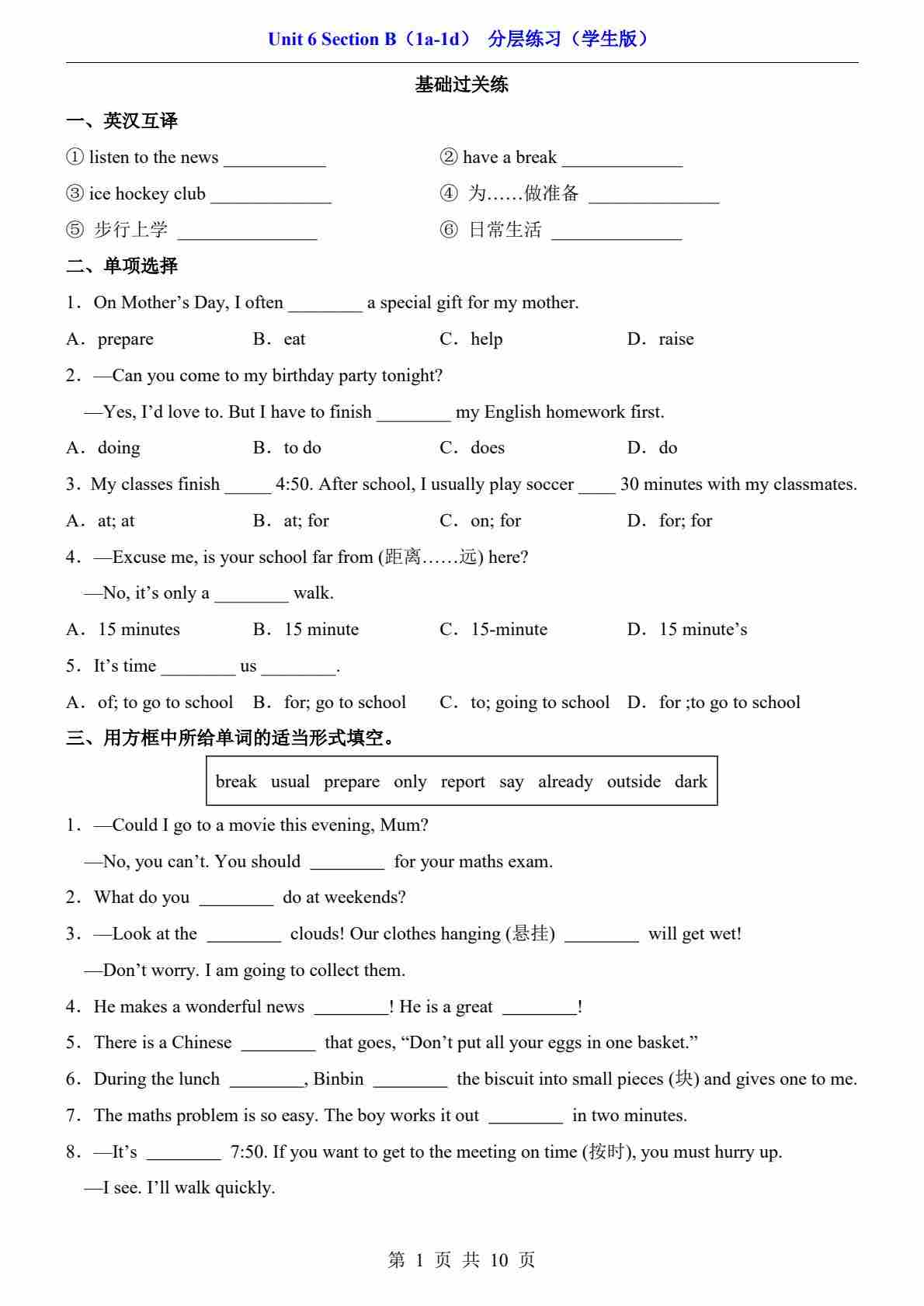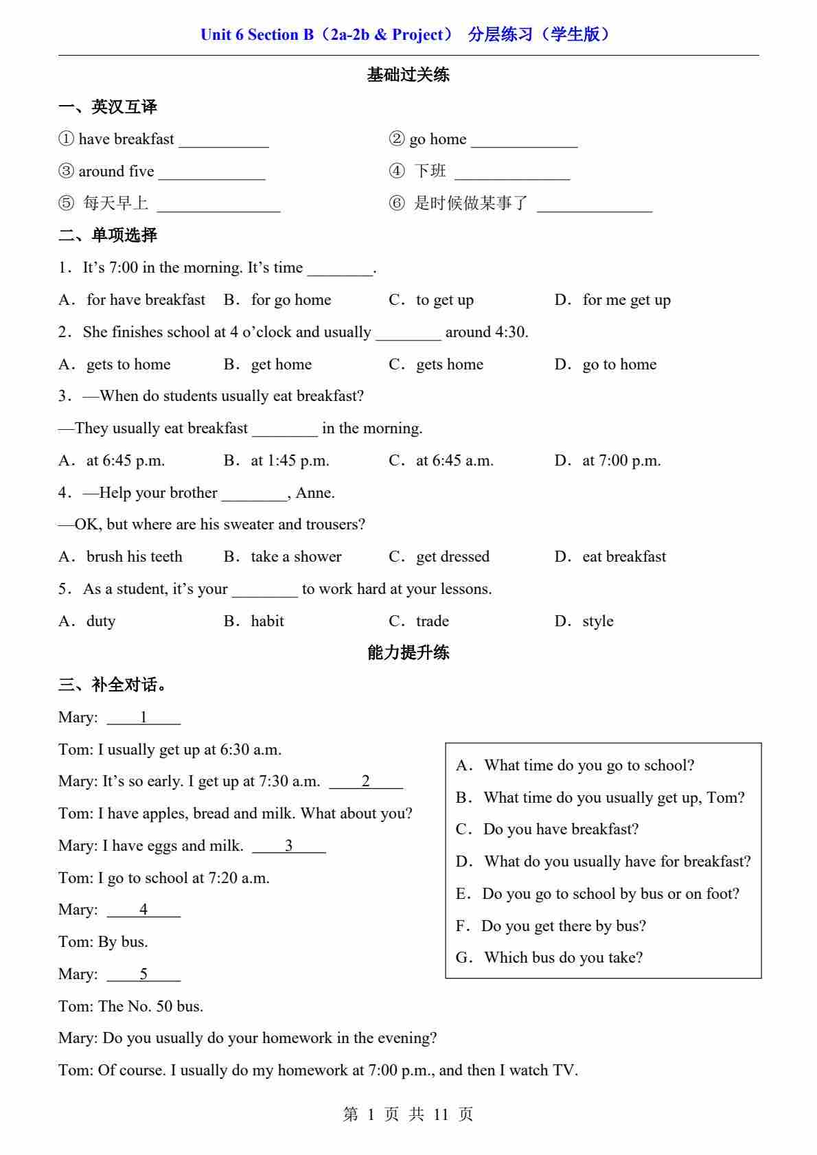 Unit 6 Section B(2a-2b & Project)(分层练习)