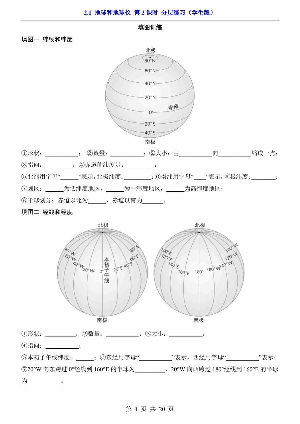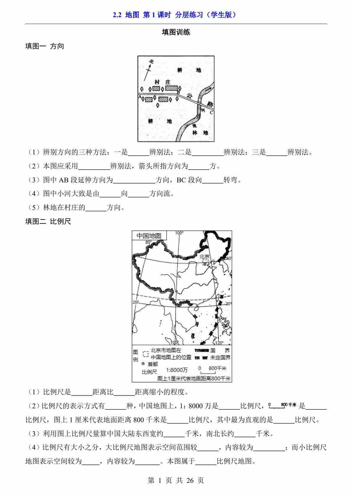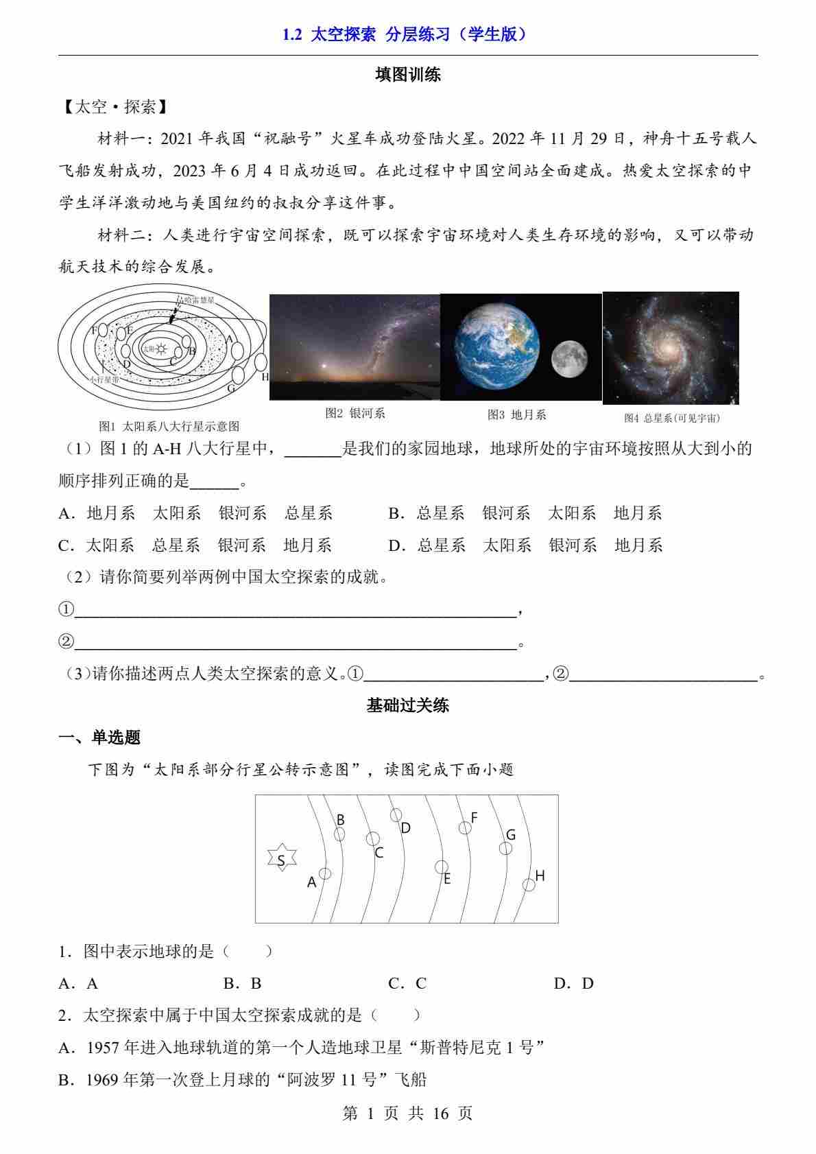 第一章 地球的宇宙环境 第二章 地球和地图【速记清单】-2024-2025学年七年级地理上册单元速记·巧练(中图版)(挖空版)