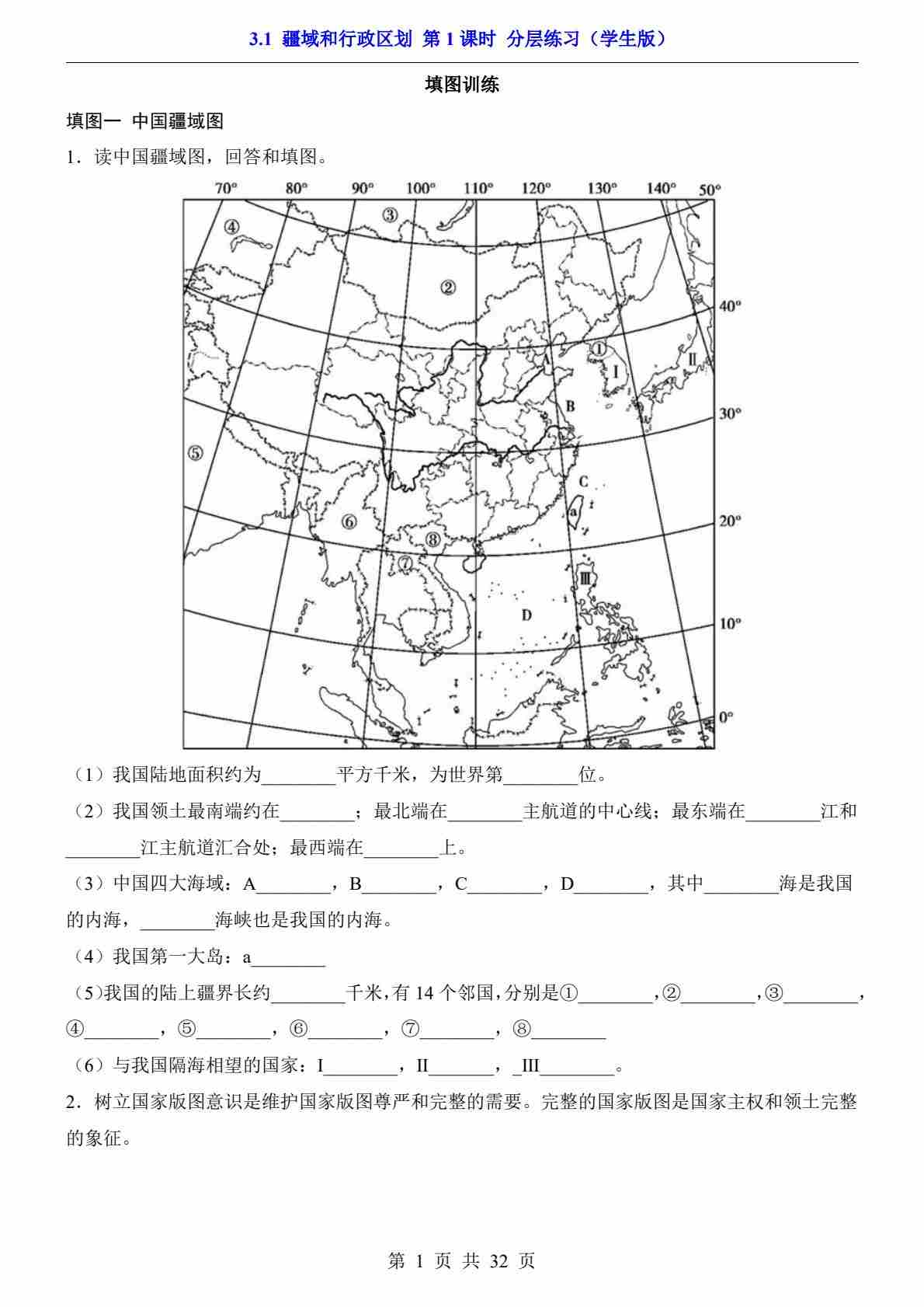 第四章 中国的自然环境 【速记清单】-2024-2025学年七年级地理上册单元速记·巧练(中图版)(挖空版)