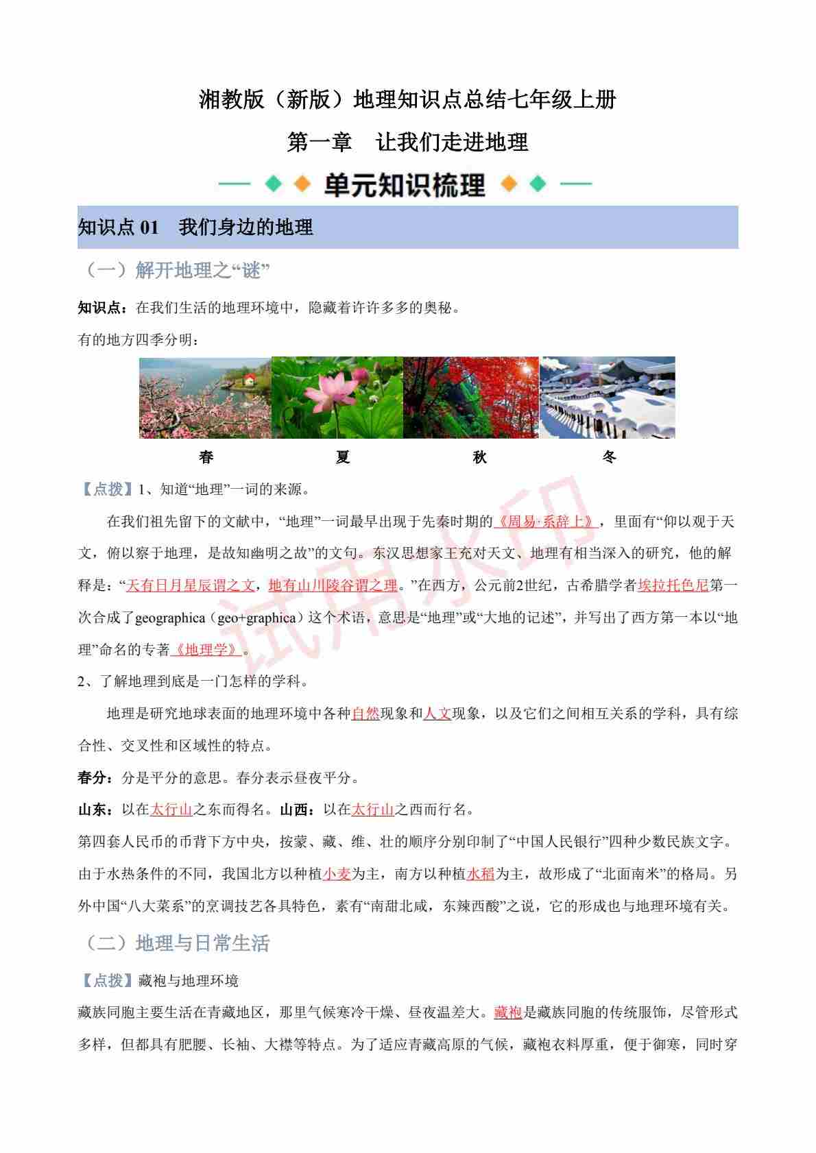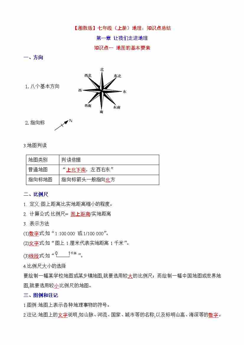 7年级地理上册必备知识点总结(湘教版)背诵版