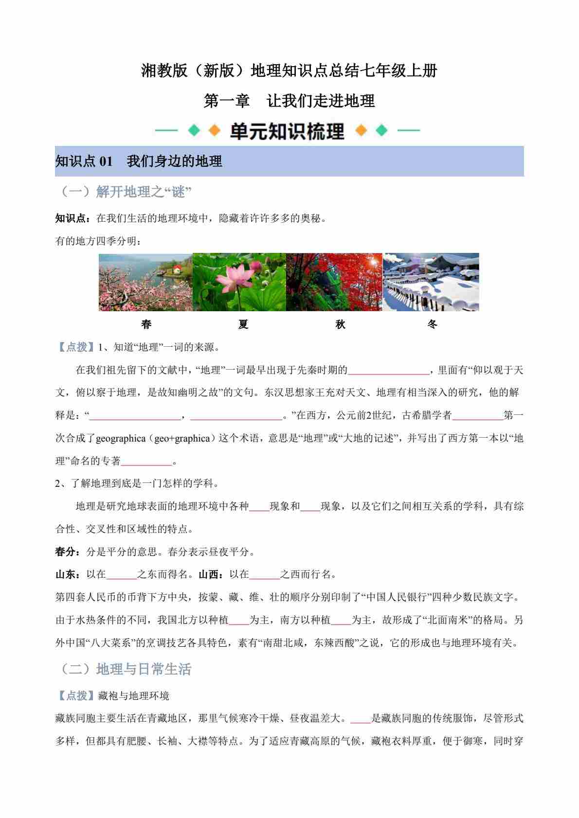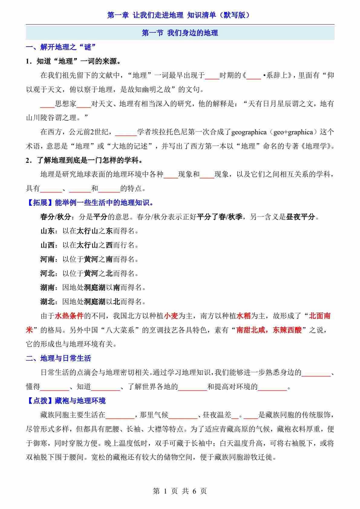 第1章 让我们走进地理(知识清单-默写版)