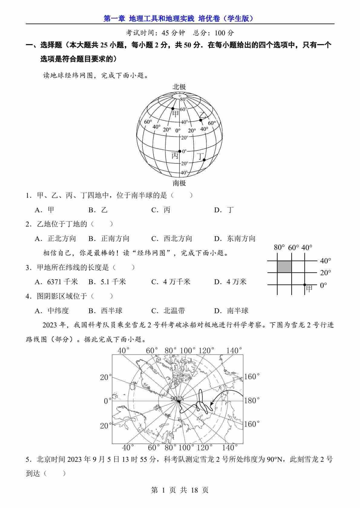 第1章 地理工具和地理实践(培优卷)