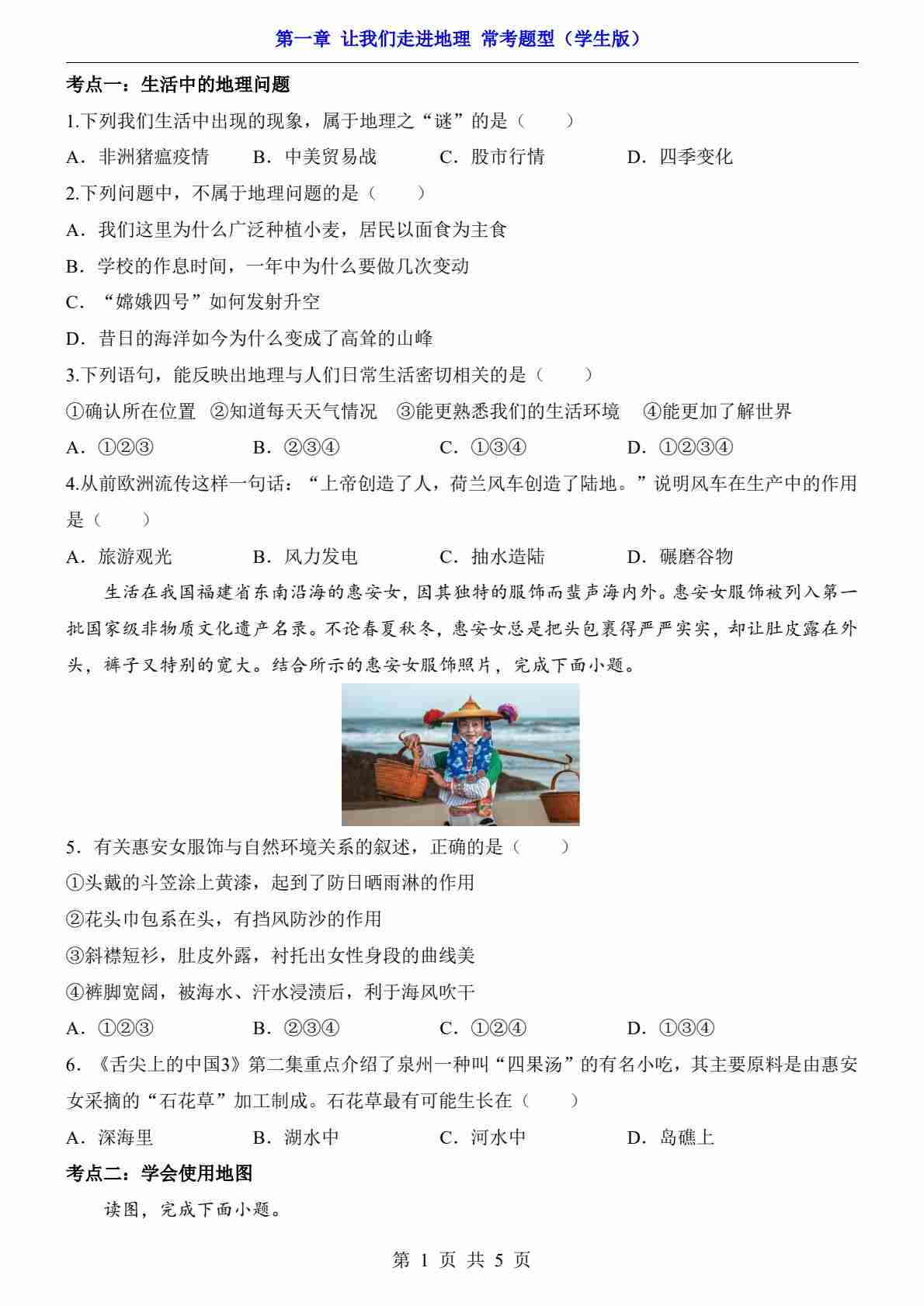 第1章 让我们走进地理(常考题型)