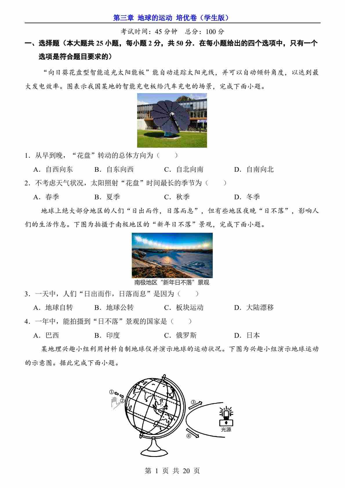 第3章 地球的运动(培优卷)