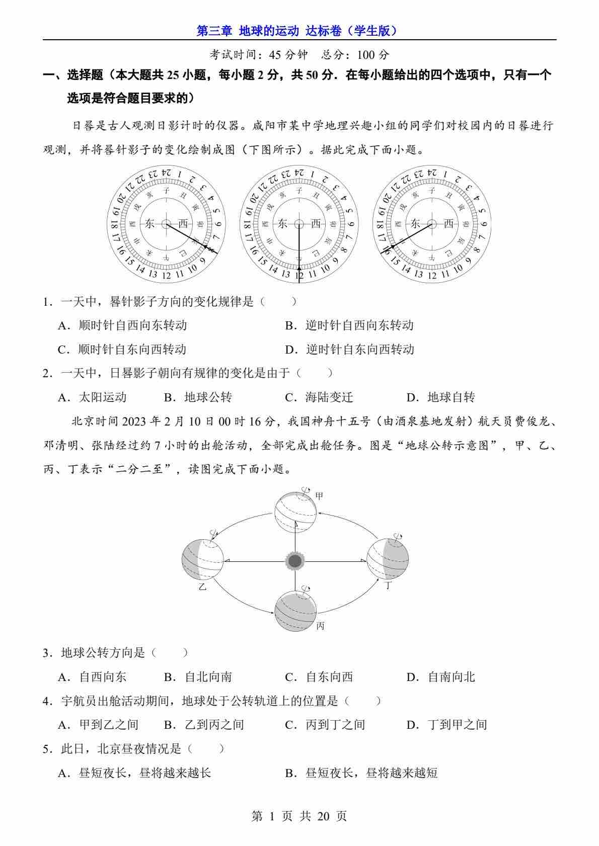 第3章 地球的运动(达标卷)