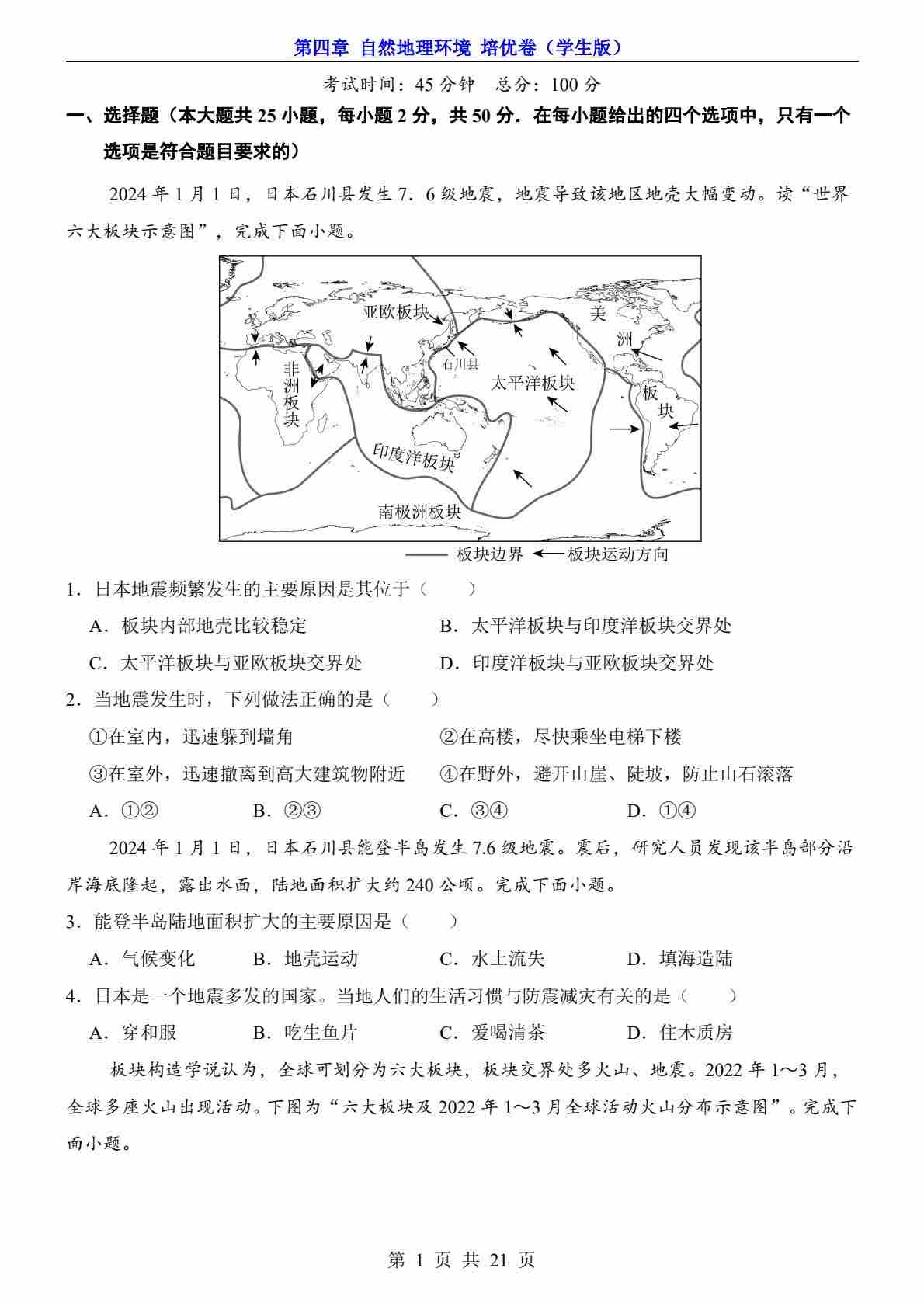 第4章 自然地理环境(培优卷)