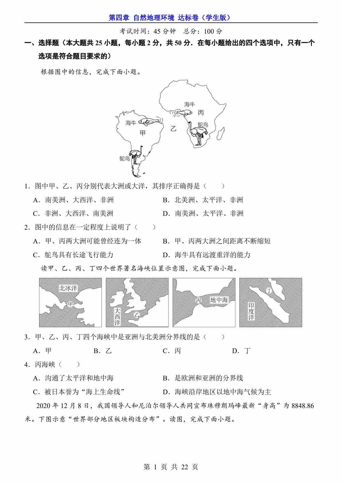 第4章 自然地理环境(达标卷)