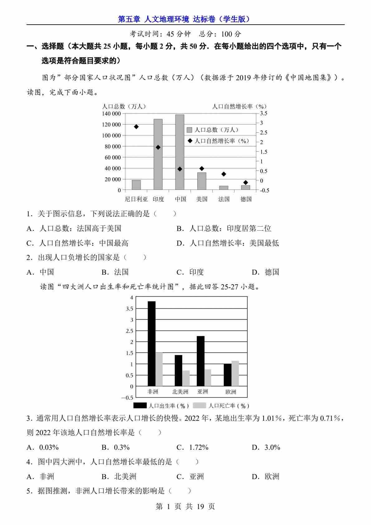 第5章 人文地理环境(达标卷)