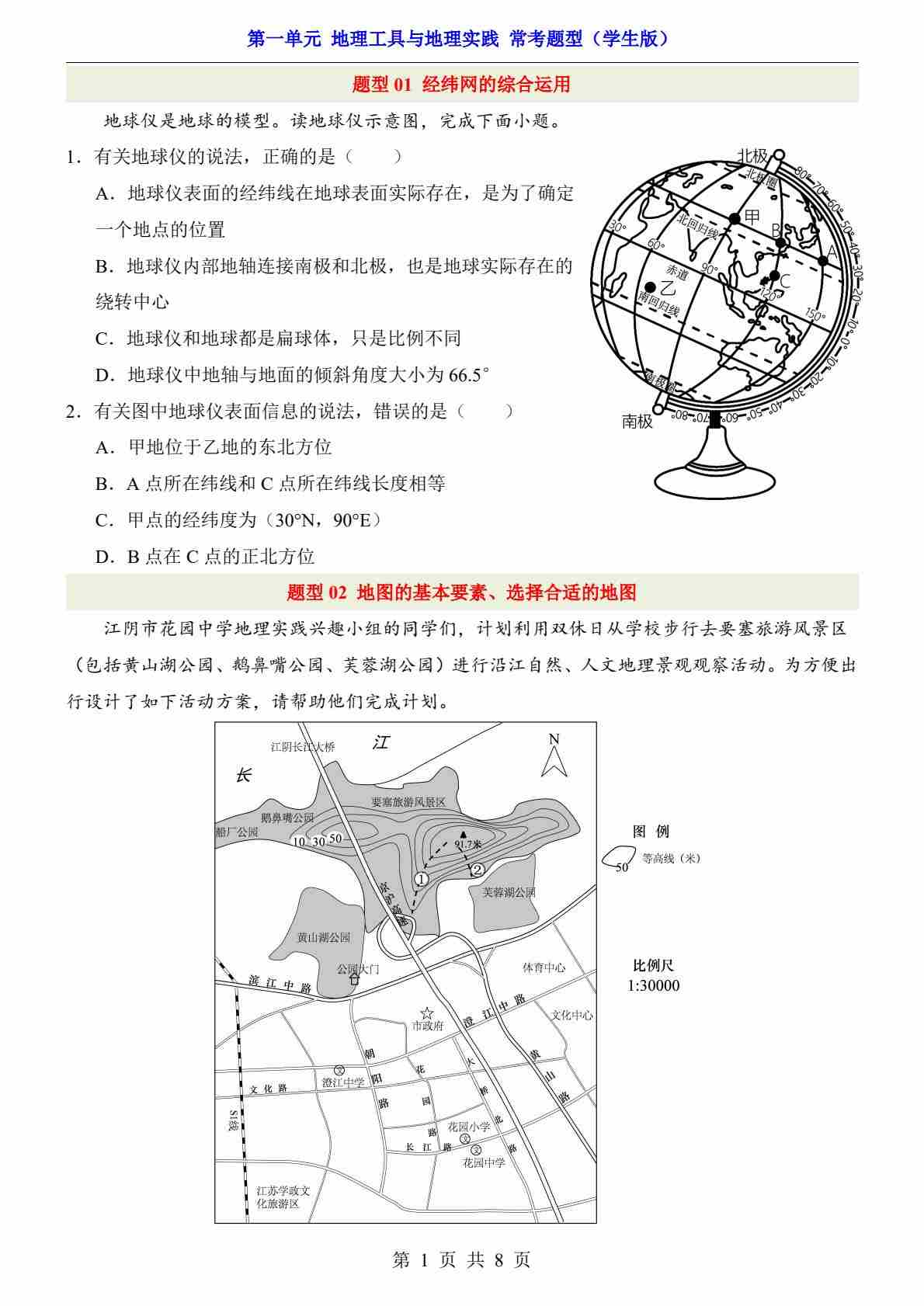 第1单元 地理工具与地理实践(常考题型)