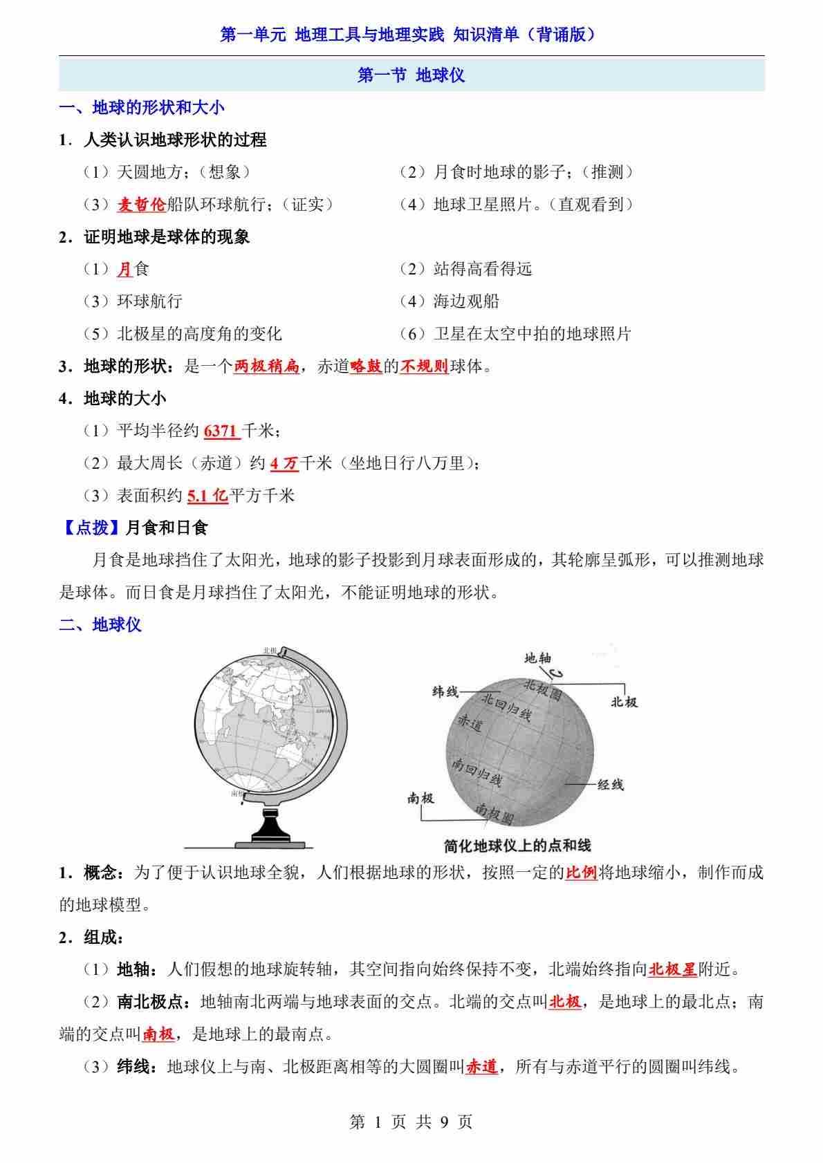 第1单元 地理工具与地理实践(知识清单-背诵版)