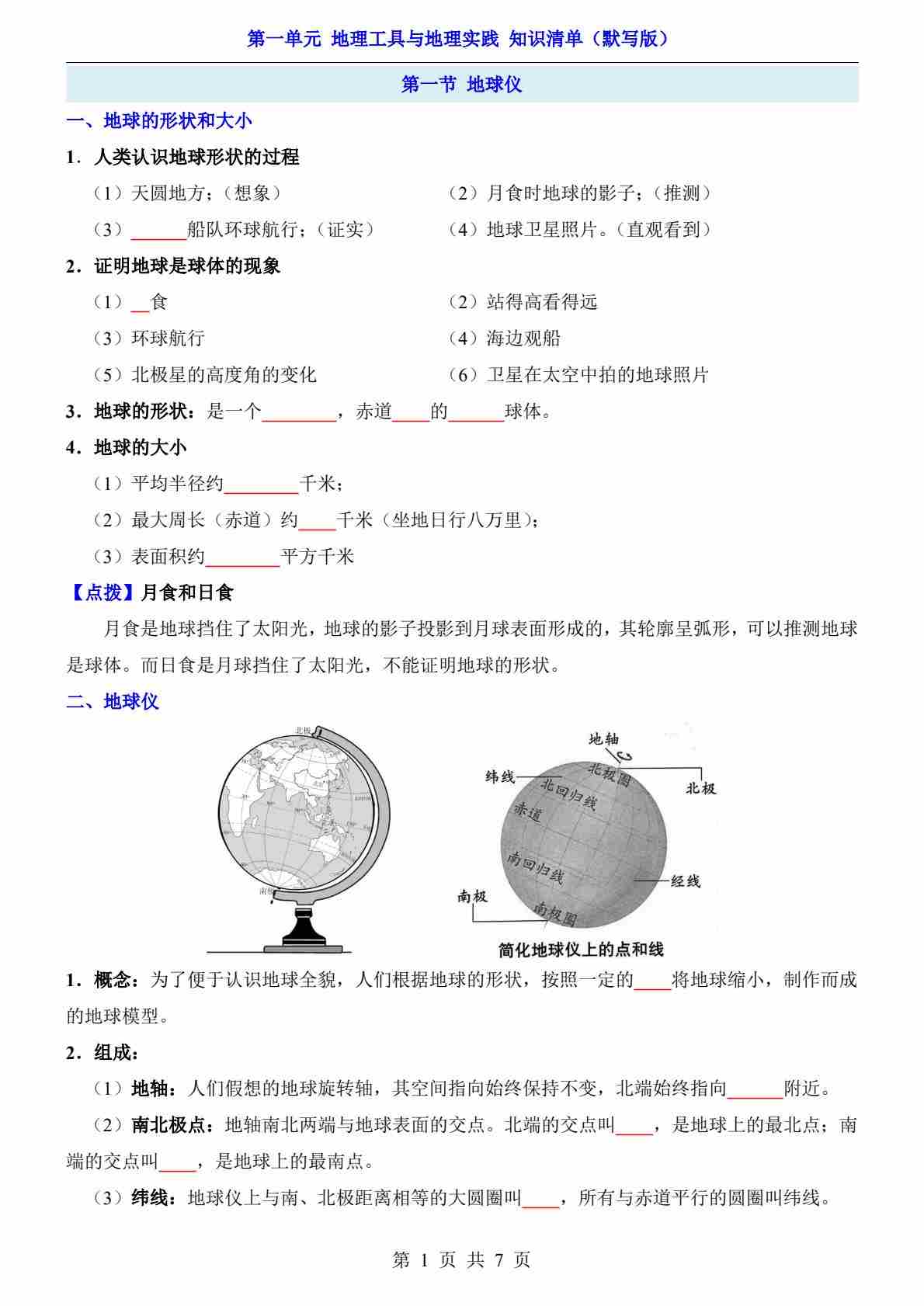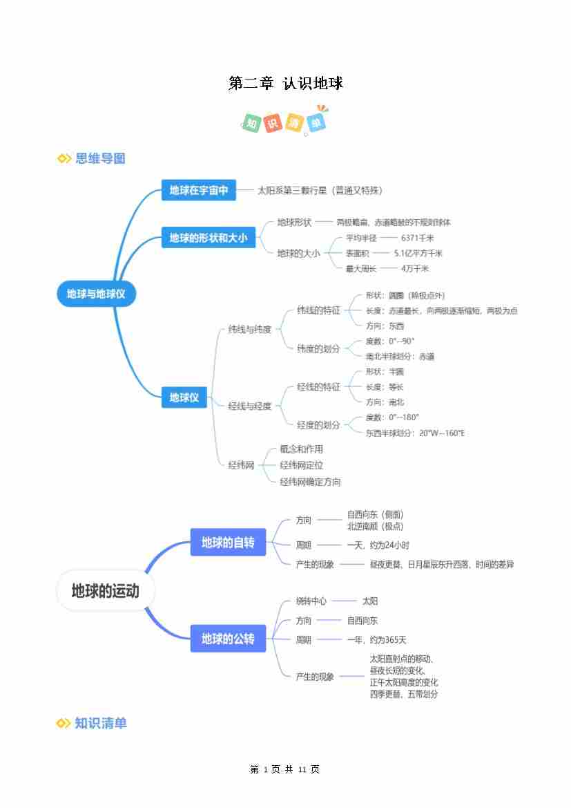 第2章 认识地球(考点清单)(挖空版)