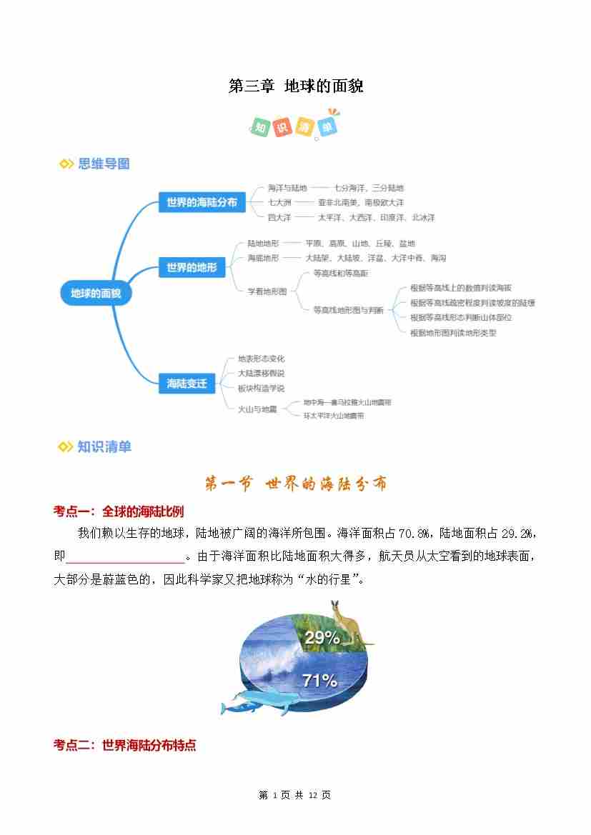 第3章 地球的面貌(考点清单)(挖空版)