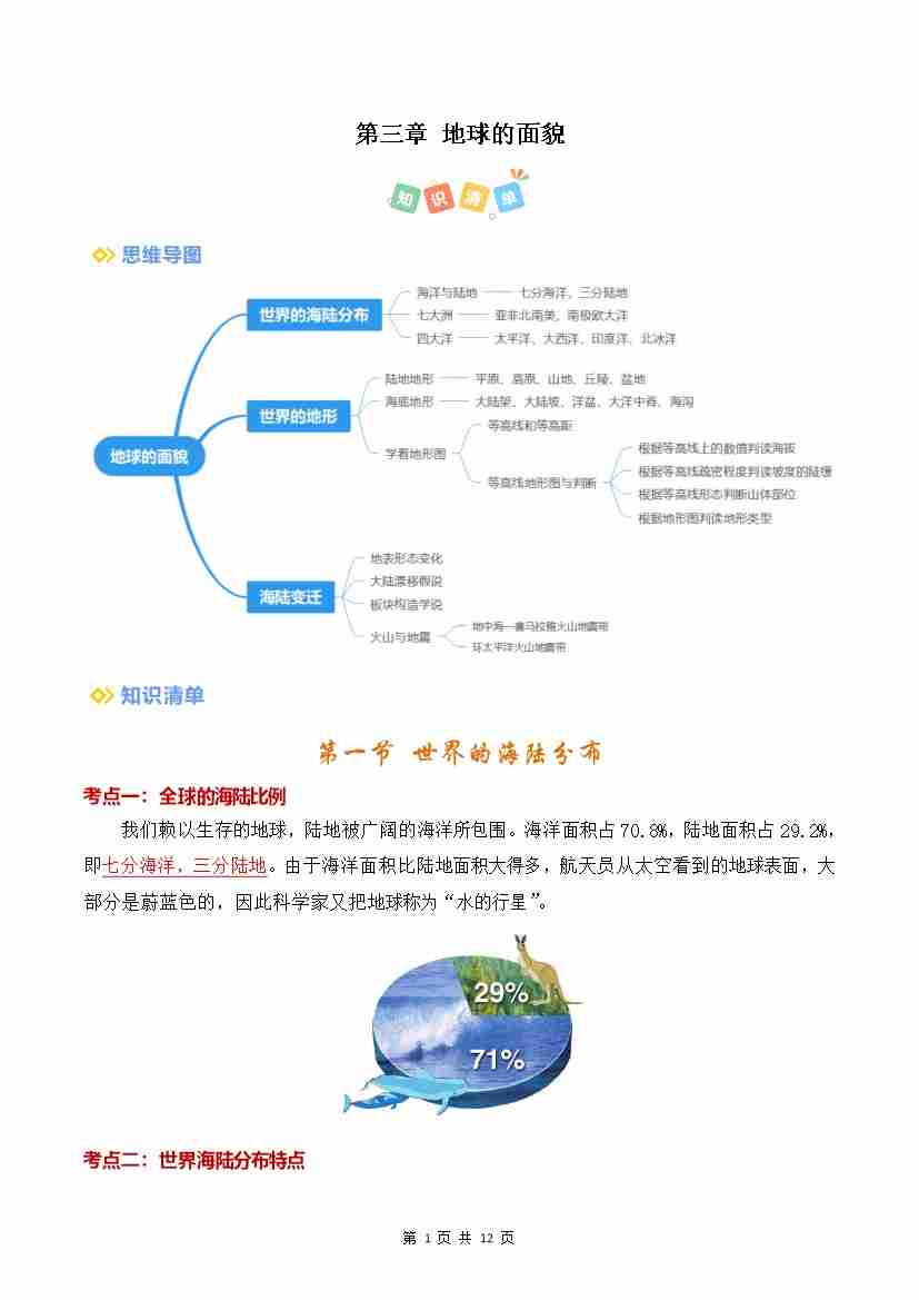 第3章 地球的面貌(考点清单)(背记版)